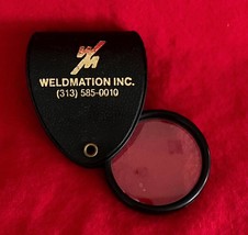 Vtg Pocket Size Round Magnifying Glass in Vinyl Case 2" w Advert Weldmation Inc