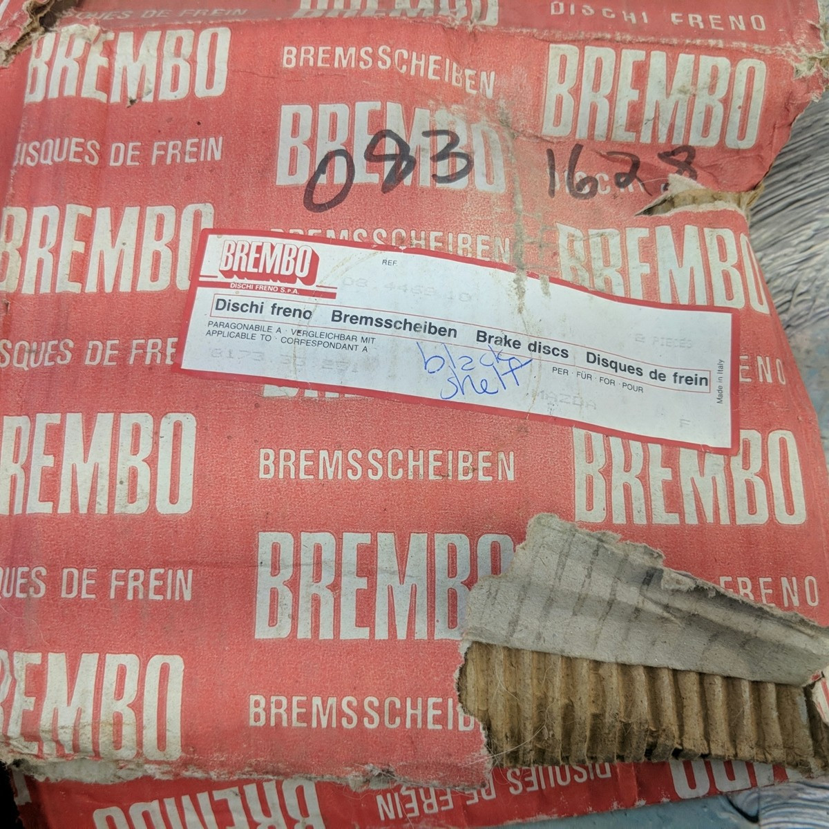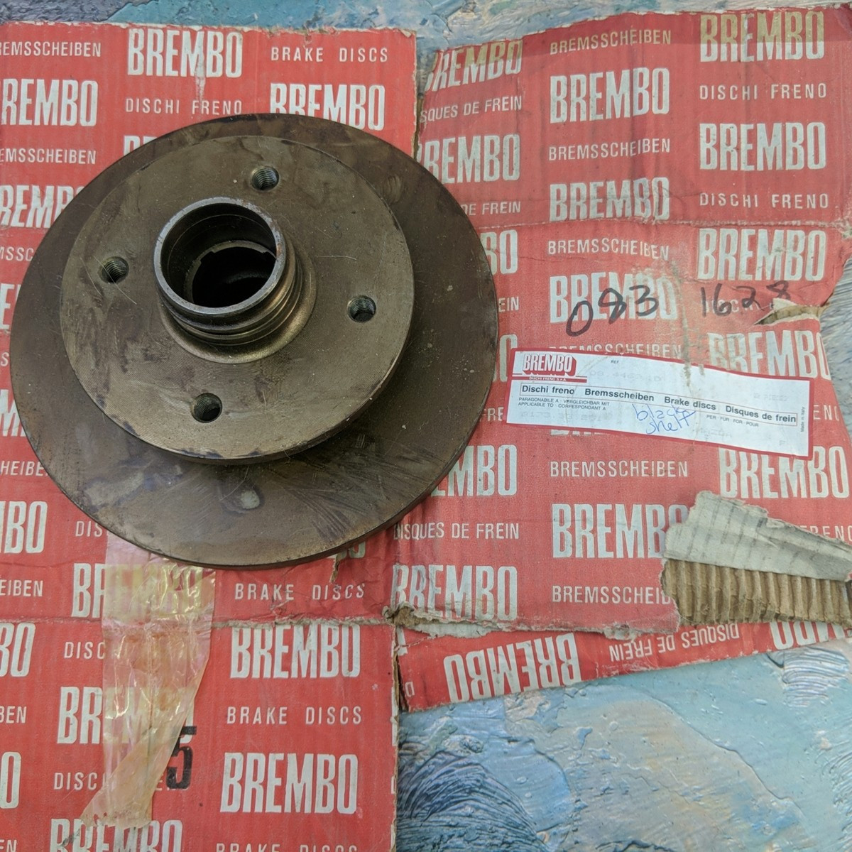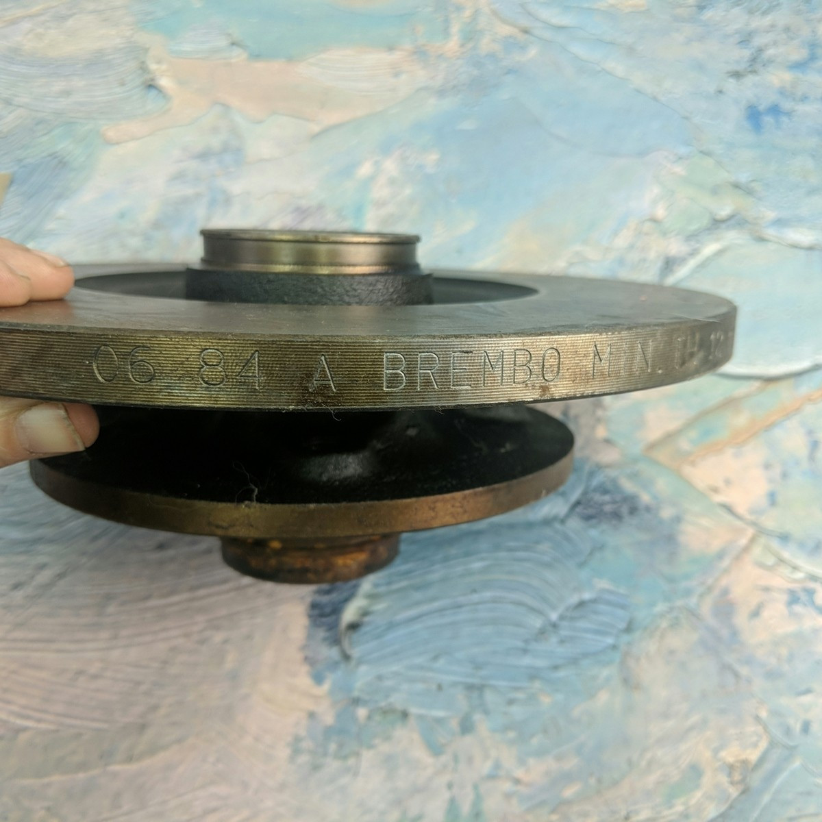 Exact item set is shown. New old stock with partial original packaging. Items have some surface rust from storage. Set weight 25 lbs. 231mm outside diameter. Nominal thickness 13mm, discard thickness 12mm. 95.5mm height. 45.2mm hub diameter. Made in Italy. No returns on installed items or partial sets. Please review our business policies in our store for information regarding returns, shipping and warranties.