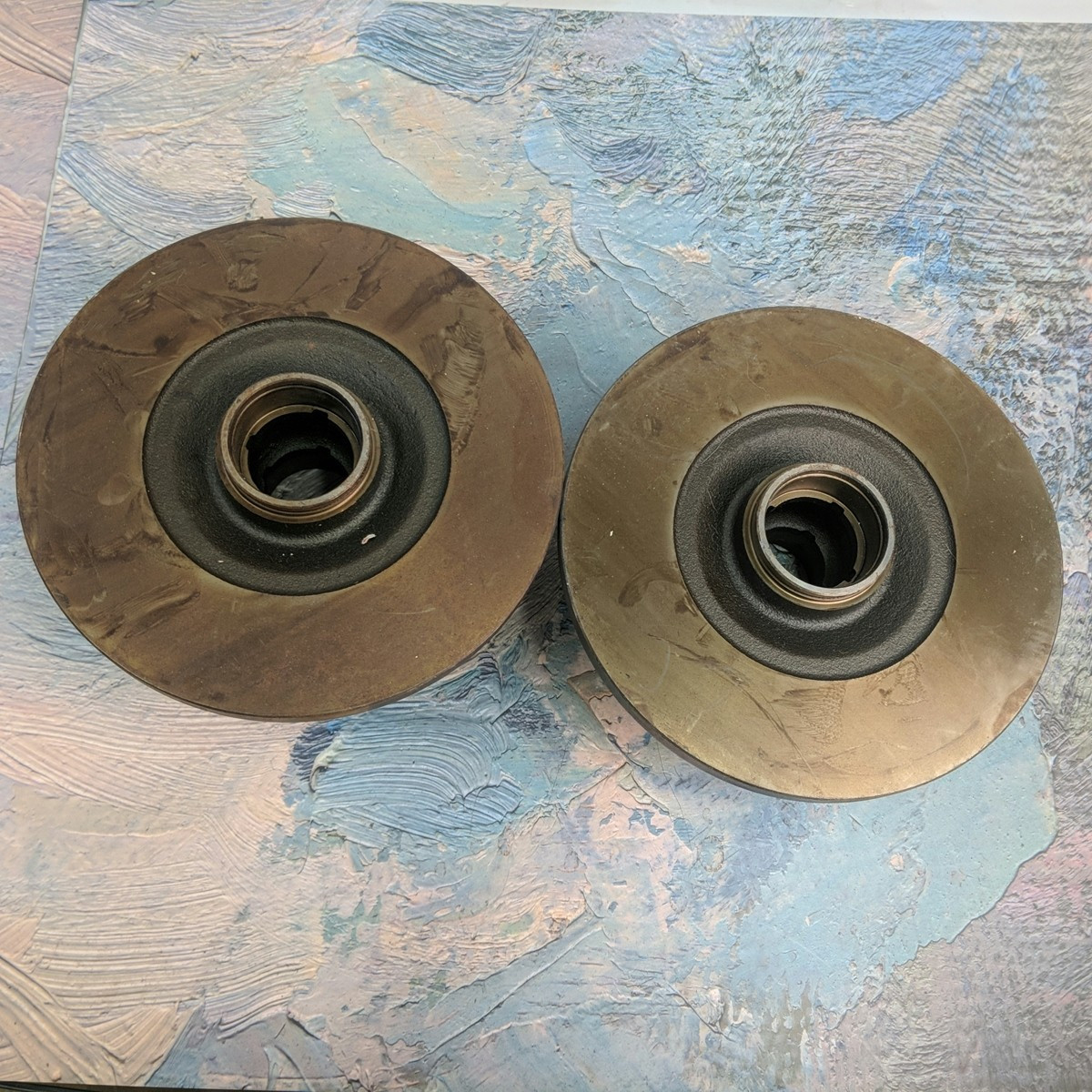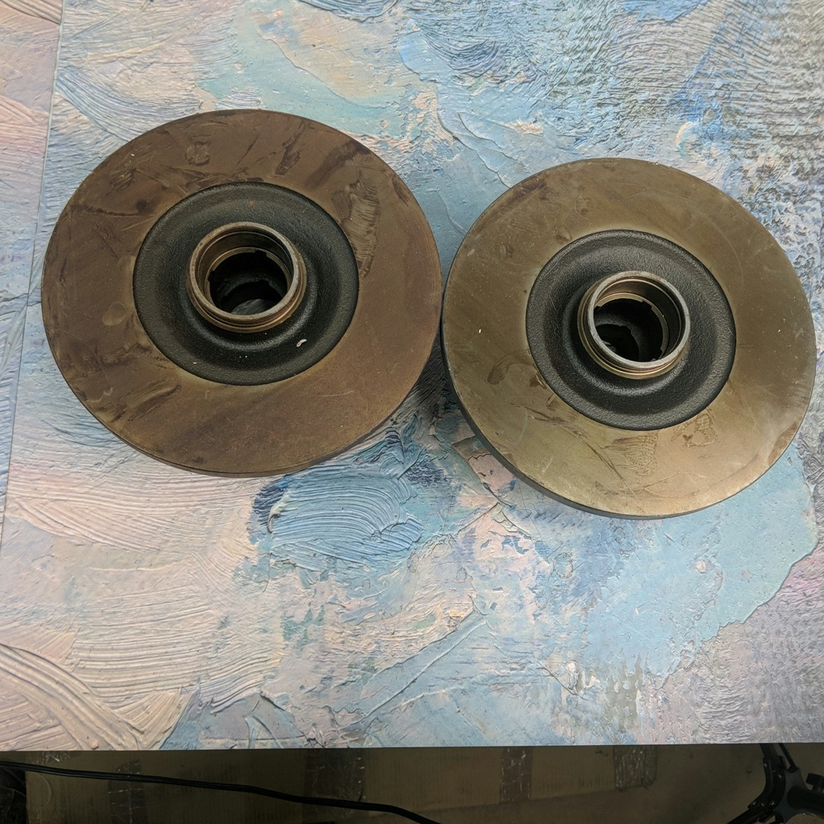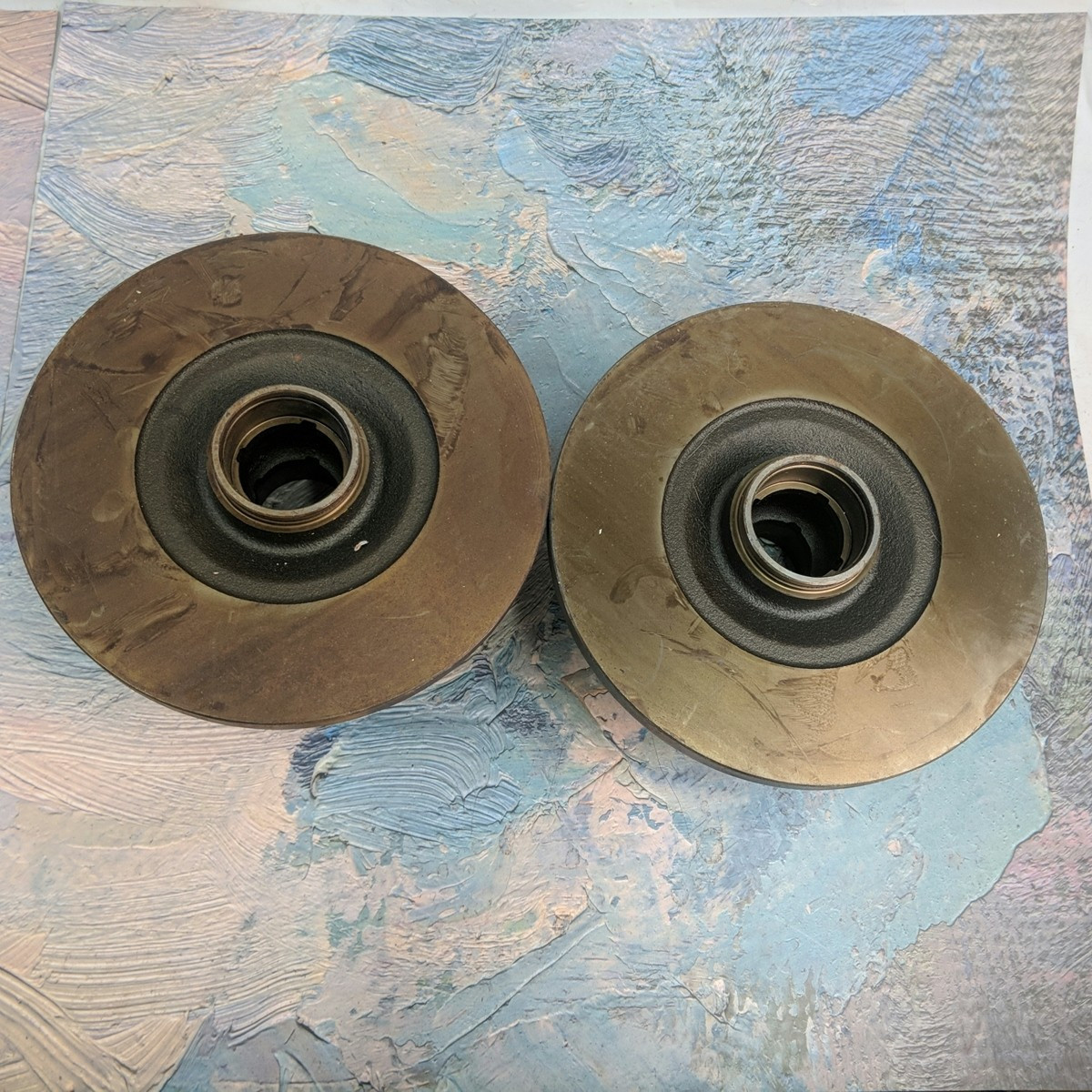 Exact item set is shown. New old stock with partial original packaging. Items have some surface rust from storage. Set weight 25 lbs. 231mm outside diameter. Nominal thickness 13mm, discard thickness 12mm. 95.5mm height. 45.2mm hub diameter. Made in Italy. No returns on installed items or partial sets. Please review our business policies in our store for information regarding returns, shipping and warranties.