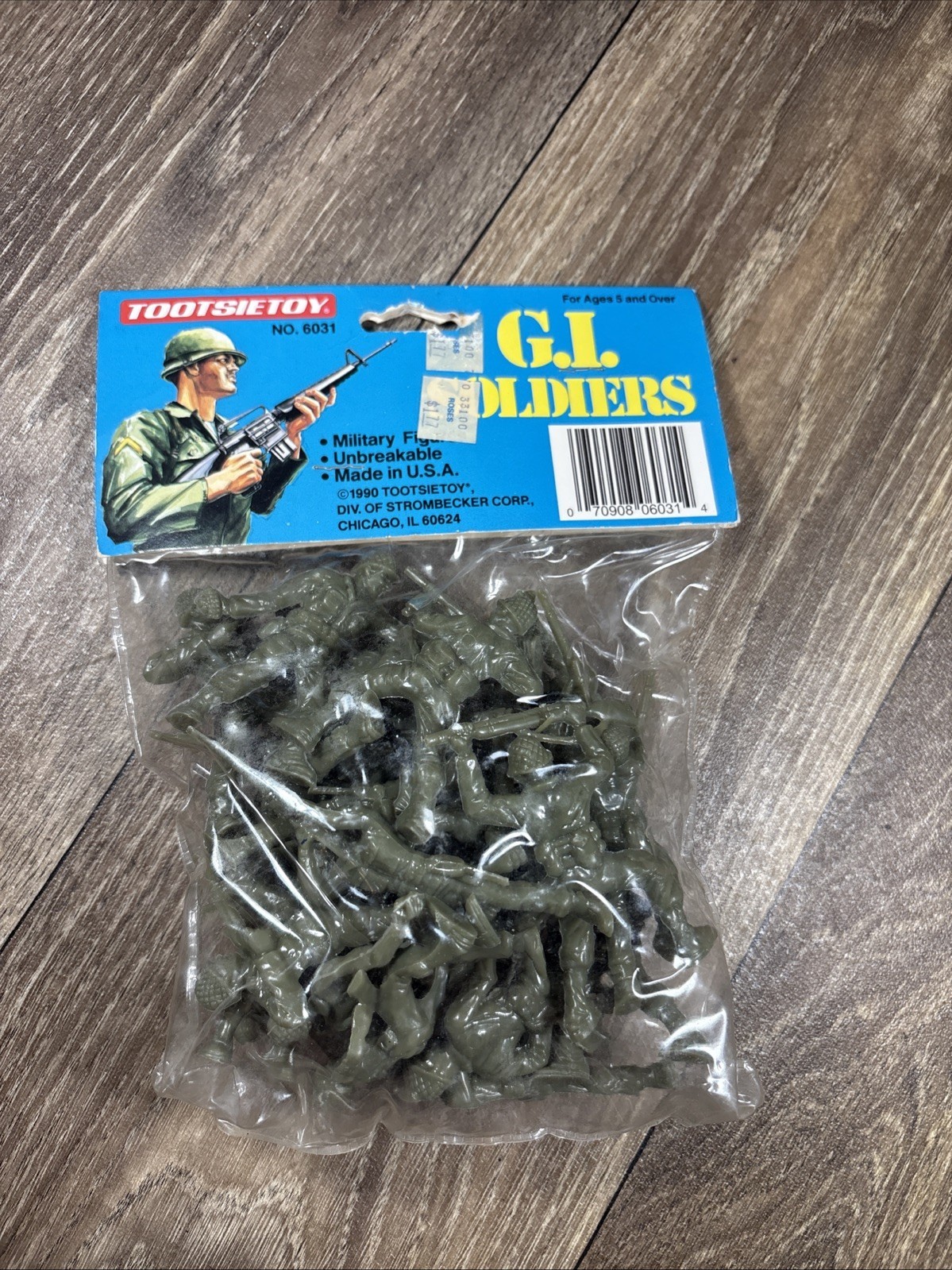 The Tootsie Toy 6031 GI Soldiers are action figures depicting military personnel, specifically soldiers. Produced by Tootsie Toy, these plastic figures are designed for imaginative play and recreate scenes from various military operations. With a focus on the USA military, these action figures provide a realistic representation of soldiers in combat situations. Perfect for collectors or children interested in military-themed toys, these Tootsie Toy GI Soldiers offer a detailed and informative play experience.