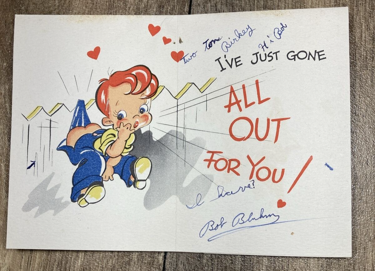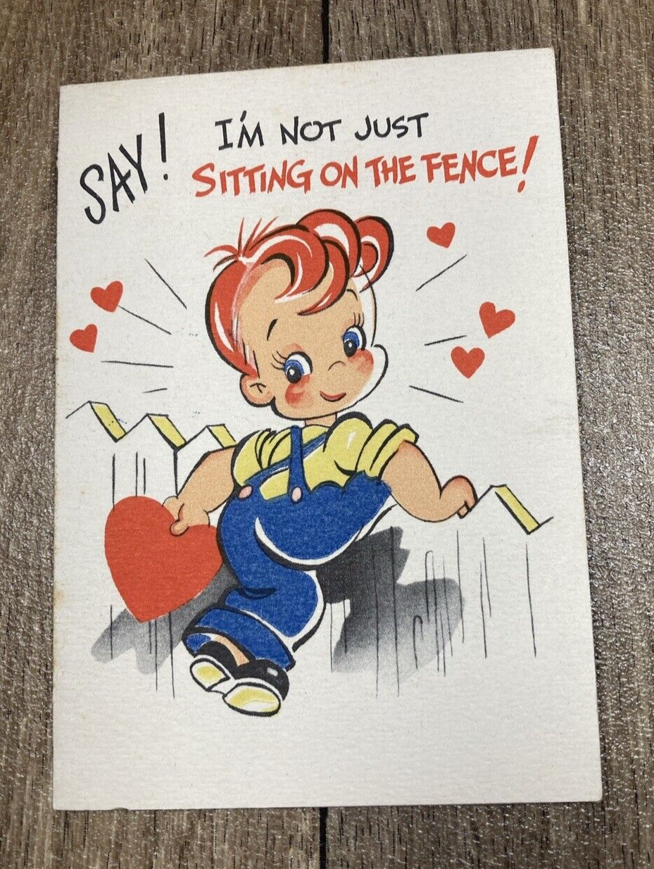 Vintage Valentine Boy on Fence All Out for You 1930s