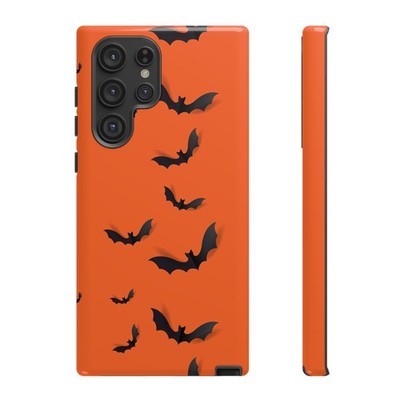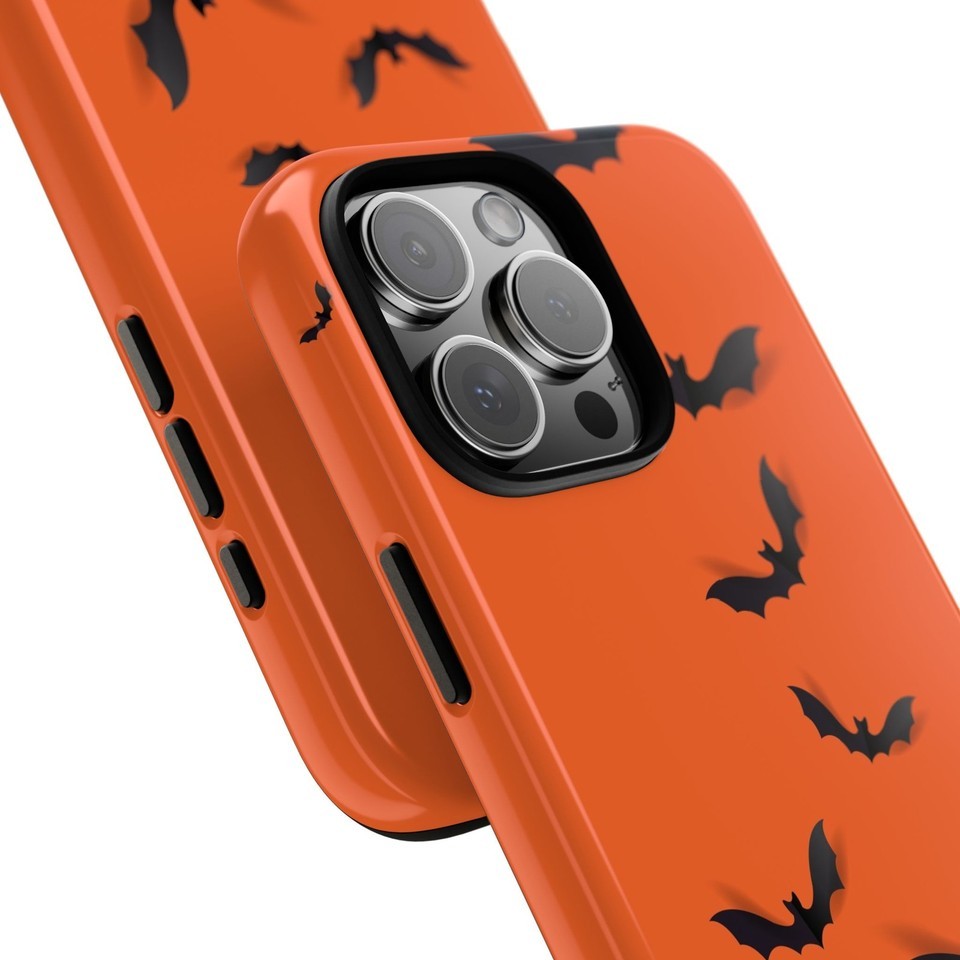 Elevate your phone protection with this durable phone case, designed to blend style with function. Featuring a vibrant orange background adorned with bats, it captures the spooky spirit of Halloween while providing exceptional safety for your device. Perfect for autumn enthusiasts, the case embodies a fun and festive atmosphere, making it an excellent choice for holiday celebrations, themed parties, and all your Halloween festivities. This product is ideal for adults who appreciate both fashion and function in their daily lives. Add a touch of personality to your phone while ensuring it's safeguarded against drops and scratches.