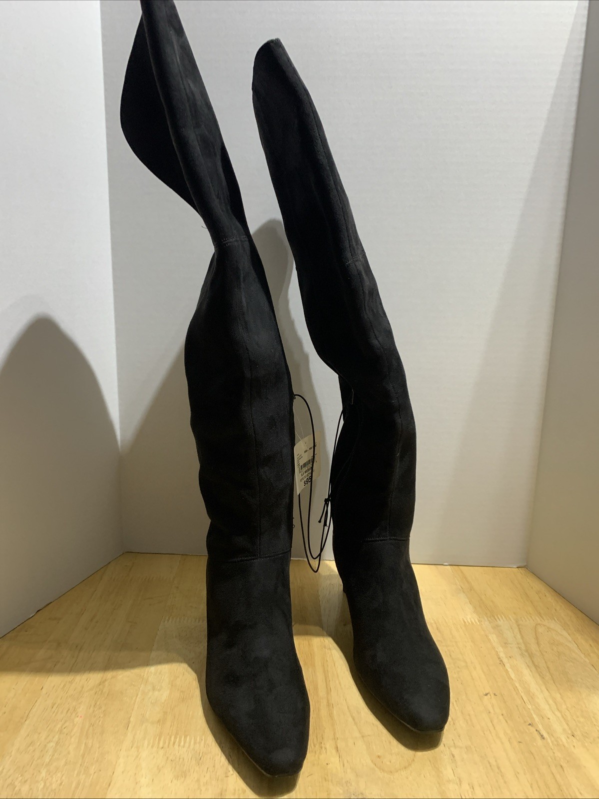 Worthington Women’s Valto Faux Suede Black High Over Knee Heeled Boots Size 6.5