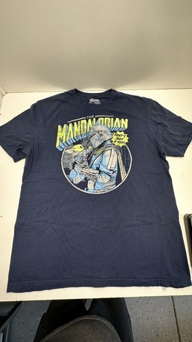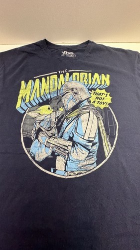 Star Wars Navy Mad Engine Mens Distressed T-Shirt The Mandalorian Large