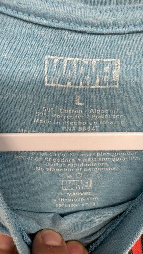 This shirt is perfect for fans of Captain America and Marvel Comics. Its size L fits the average man, and it's suitable for all seasons. This shirt was made in Mexico and is part of the Marvel product line, making it a must-have for any superhero fan.
