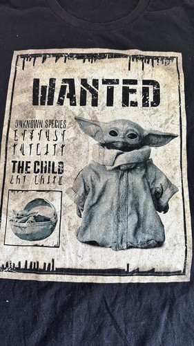 star wars black mandalorian grogu "wanted" The Child t-shirt Woman?s XXL. Condition is Pre-owned. Shipped with USPS First Class.