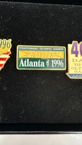 The featured refinements of this set are the Atlanta Olympics, making it a perfect addition to any sports memorabilia collection. This set is ideal for those who attended the games or just love collecting Olympic pins and buttons. Add this unique piece to your collection today!