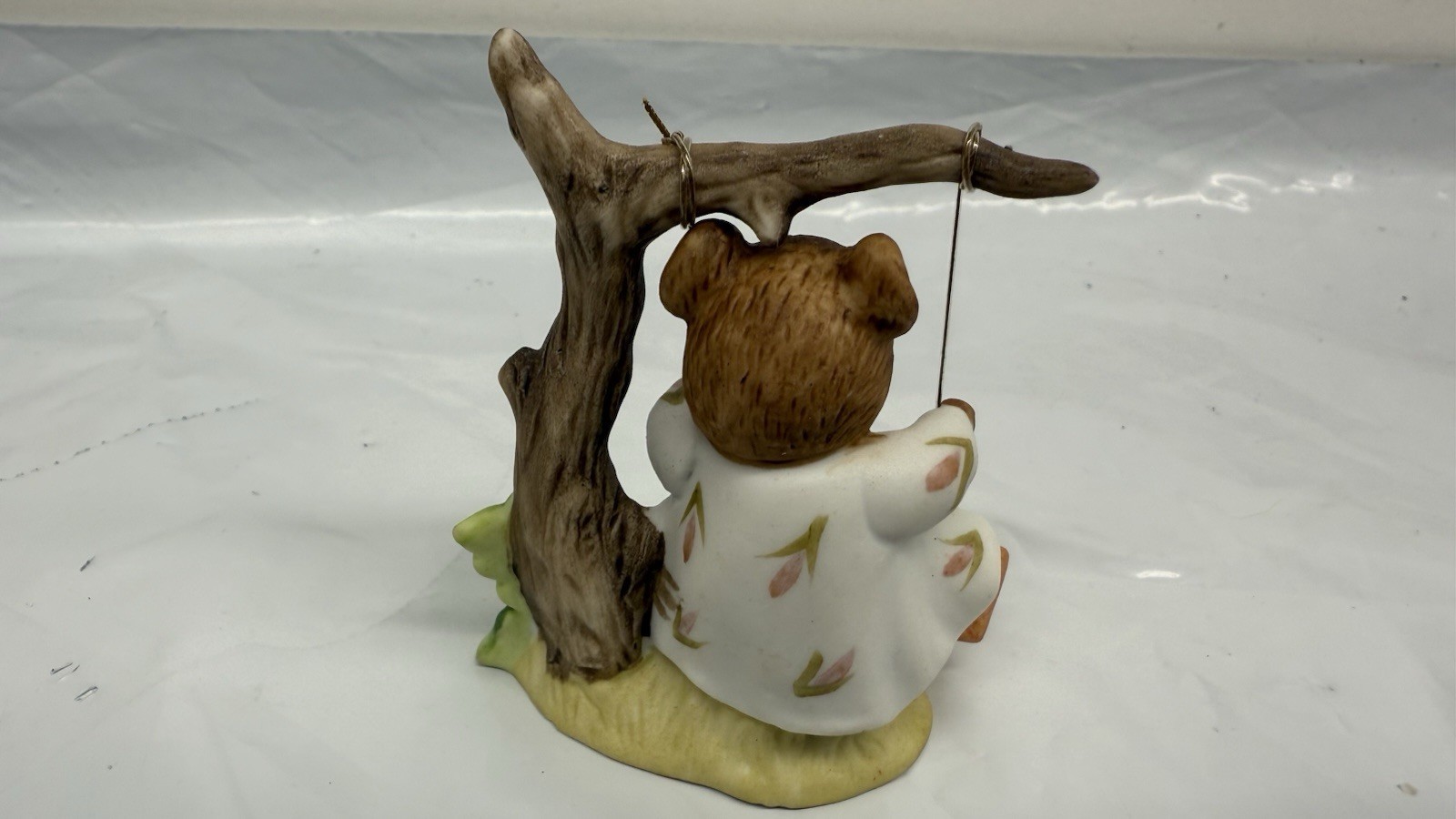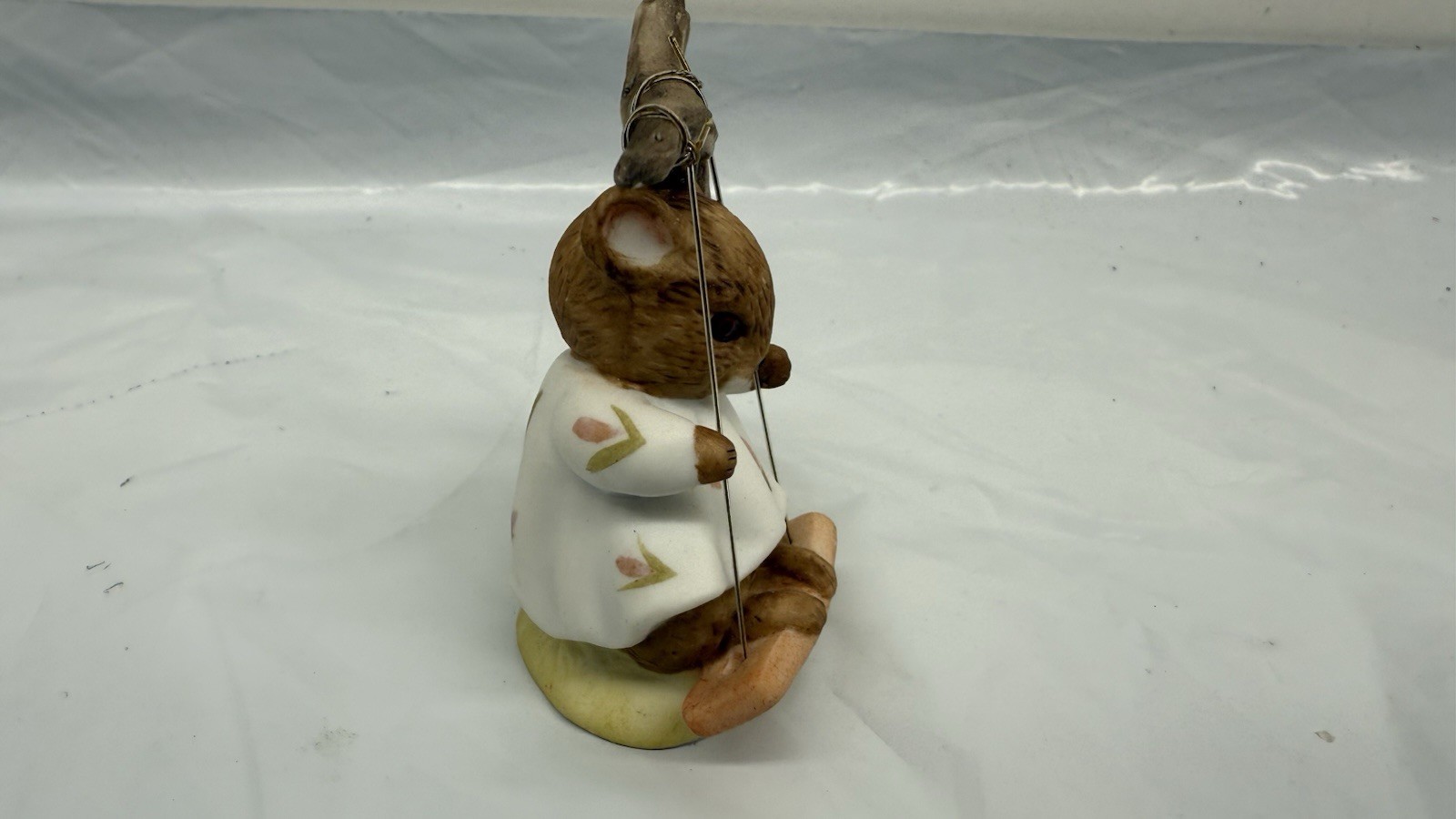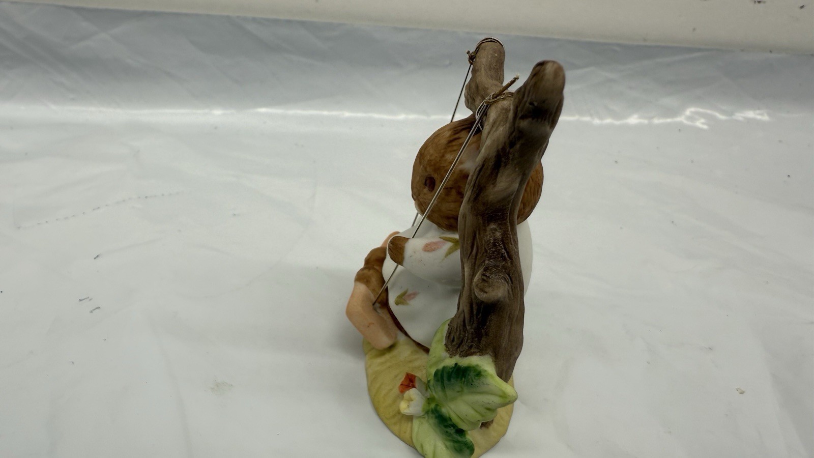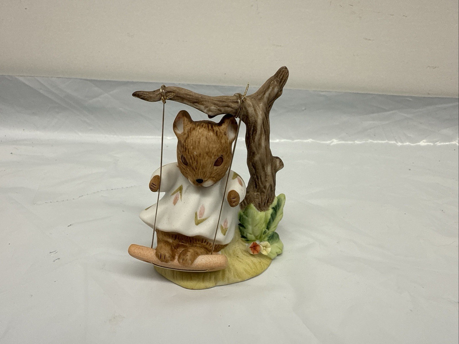 Vintage 1975 Enesco Figurine Mouse on a Swing 2.5” Tall