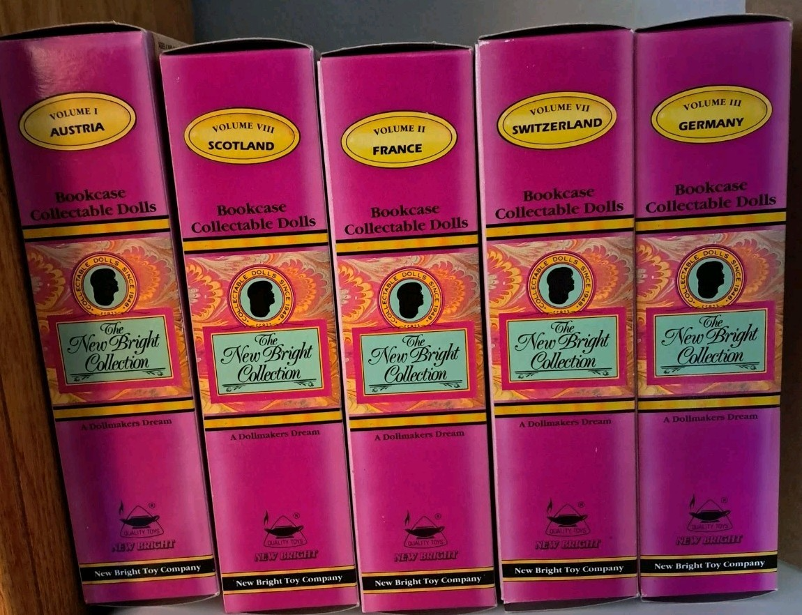 Vintage 1992 The New Bright Collection Bookcase Collectible Dolls Lot Of 5