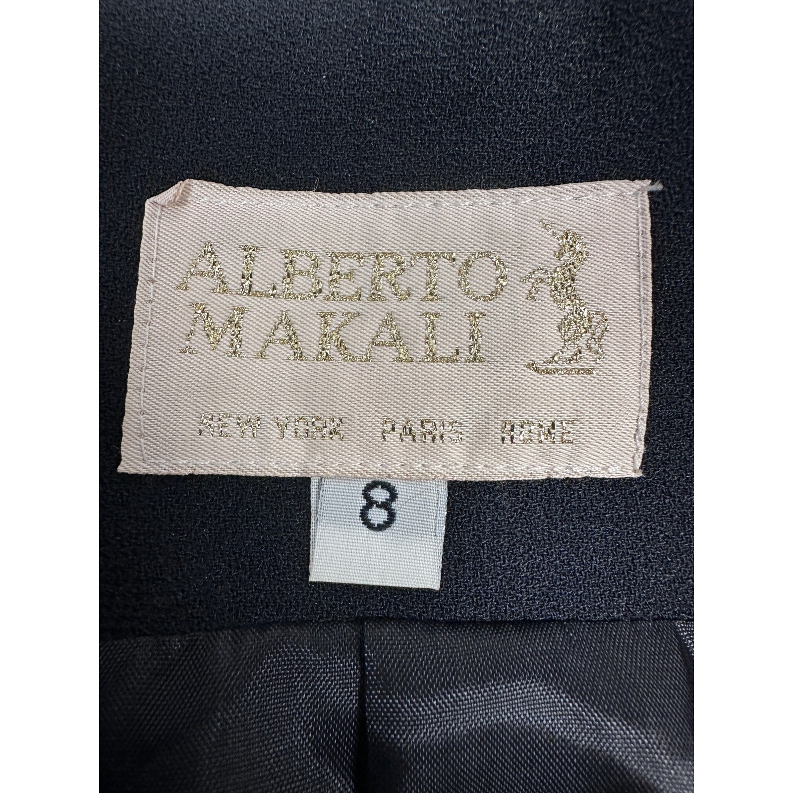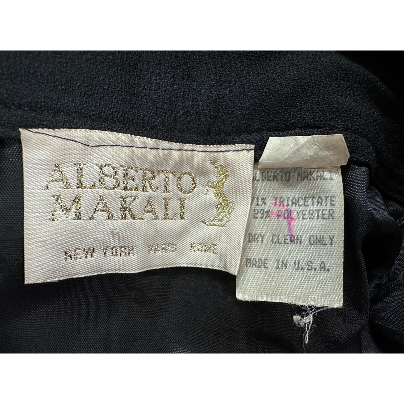 Alberto Makali, launched in the 1980s, quickly became known for striking formalwear and statement suiting. His designs blended European tailoring with flashy, luxe details (metallics, ornate buttons, leather trims), making them popular among women seeking glamorous power dressing. Pieces from this era remain highly collectible.