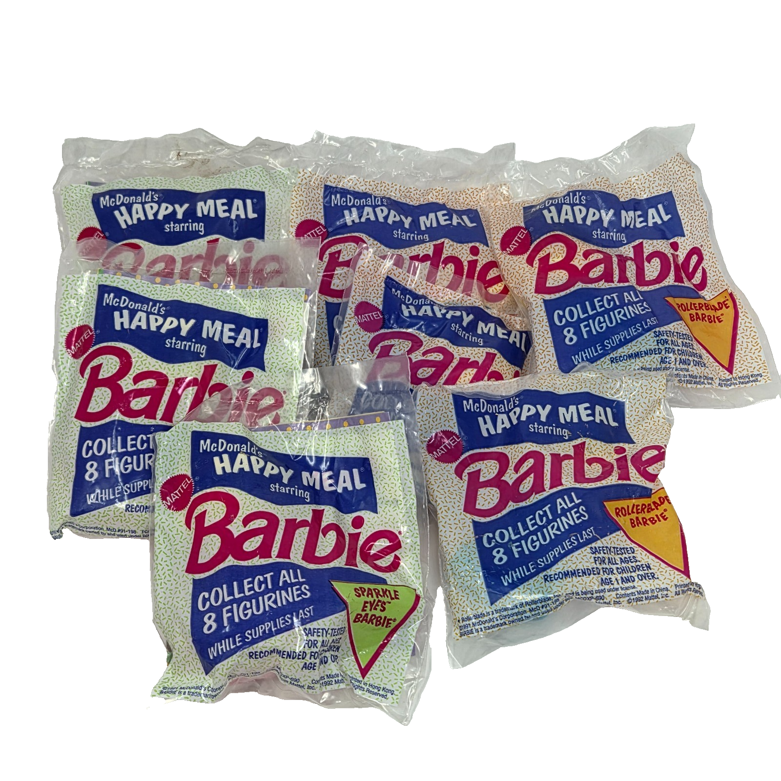 VINTAGE 1991 McDONALDS HAPPY MEAL TOY LOT OF 7 BARBIE ROLLERBLADE SPARKLE EYES