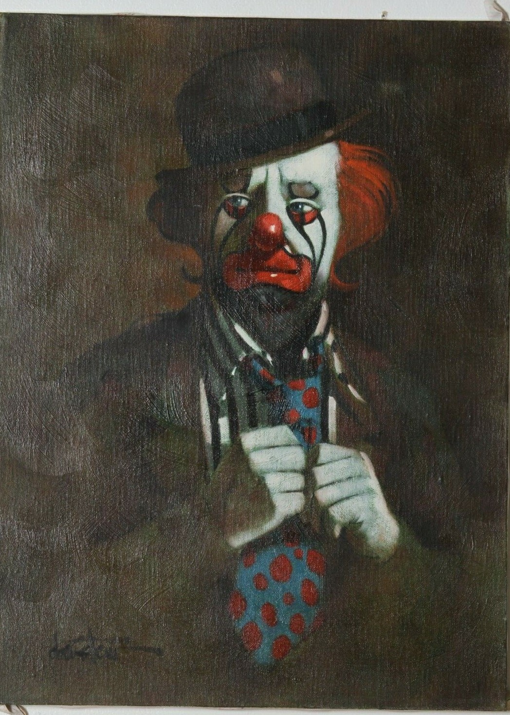 Clown w/ Polka Dot Tie by Chuck Oberstein Signed Oil on Canvas 24"x18"