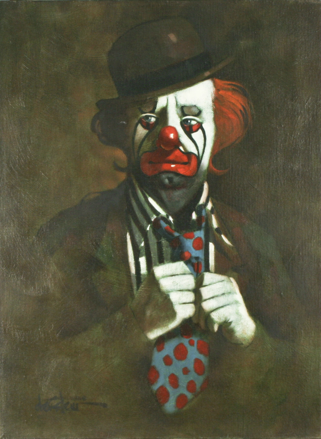 Clown w/ Polka Dot Tie Oil Painting by Chuck Oberstein