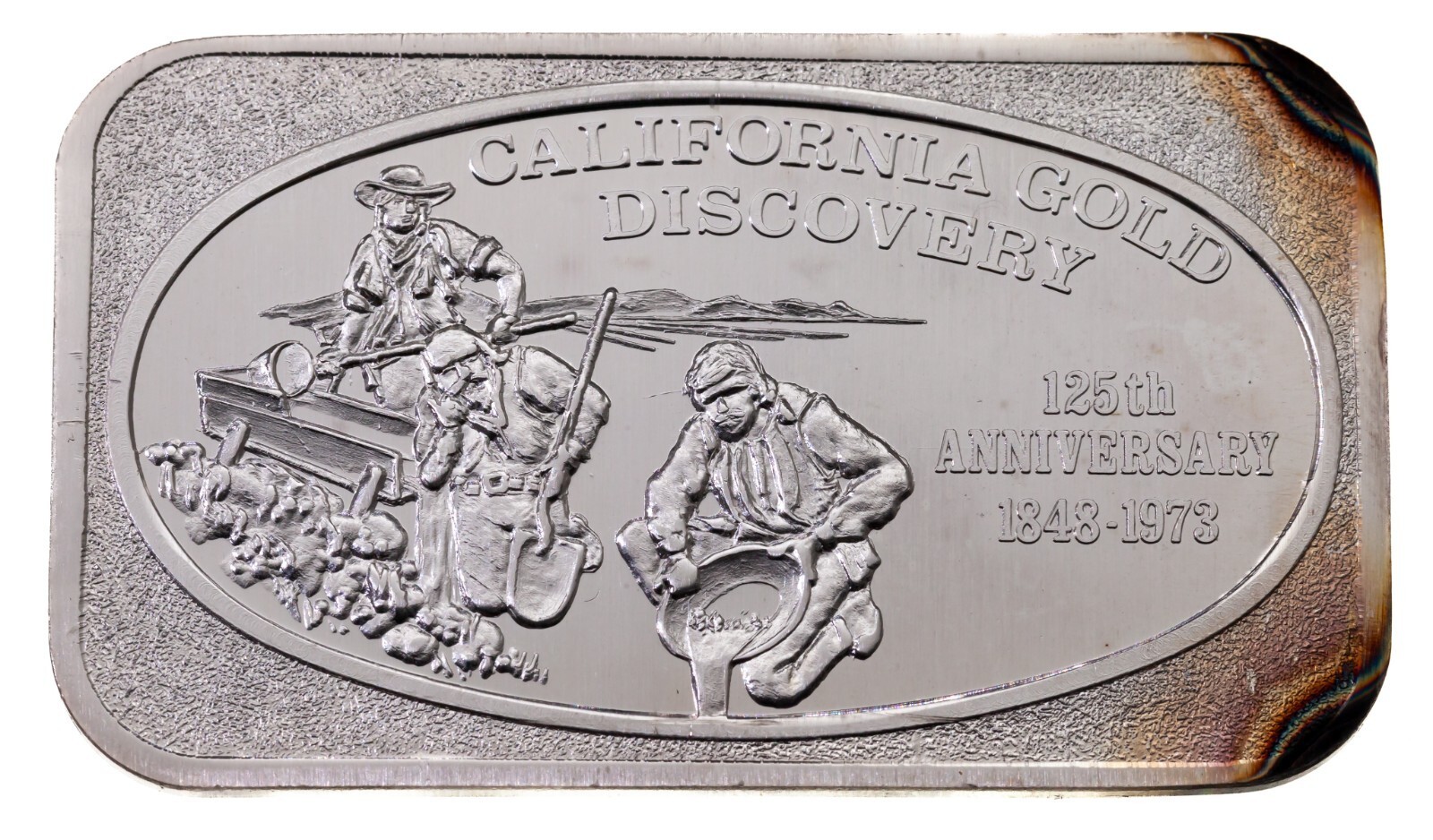 Obverse: Three Gold Miners "CALIFORNIA GOLD DISCOVERY" "125TH ANNIVERSARY 1848-1973"
