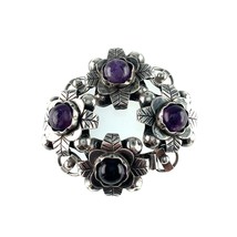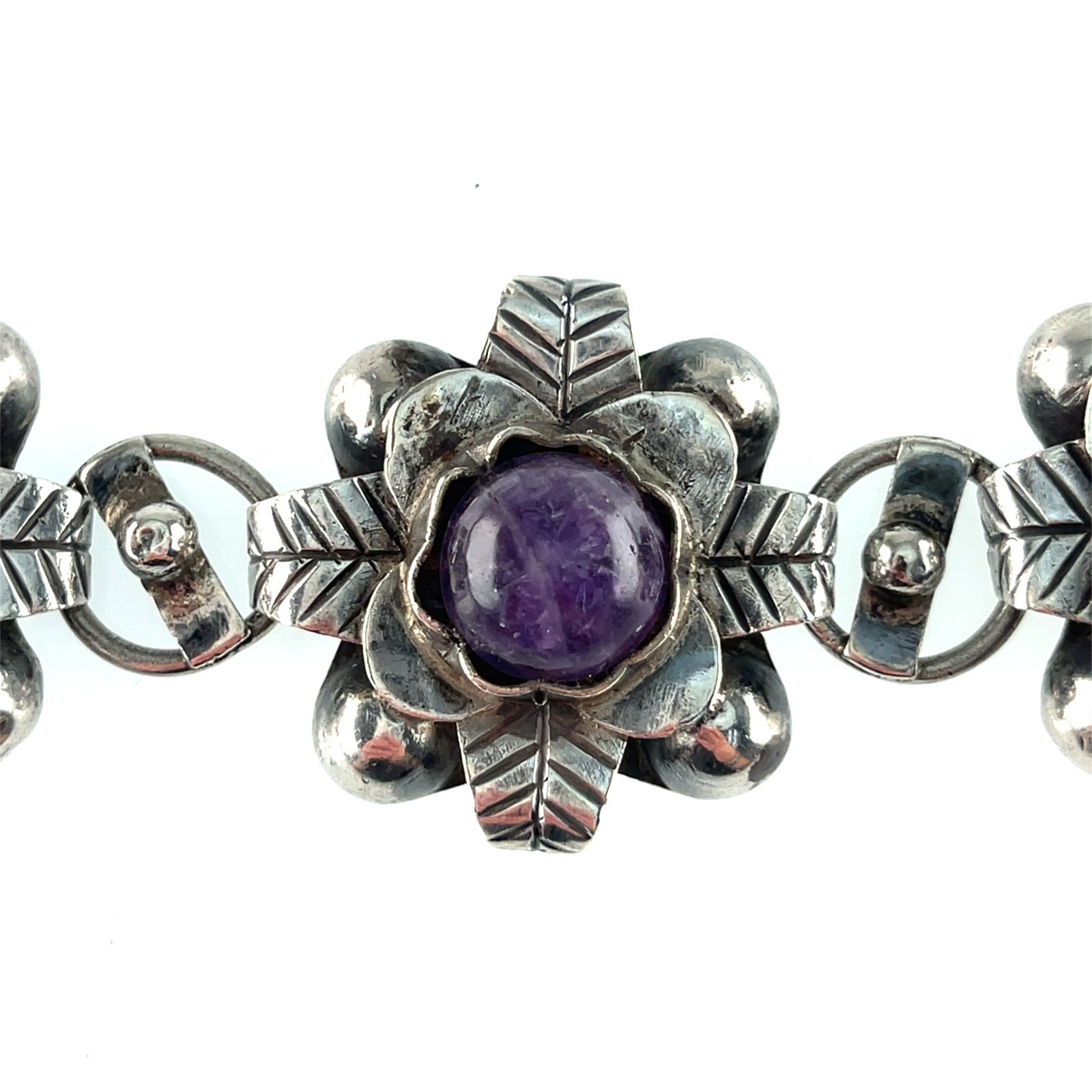 Vintage Mexico Sterling Silver Amethyst Floral Link Bracelet 7.50" 66.6gr