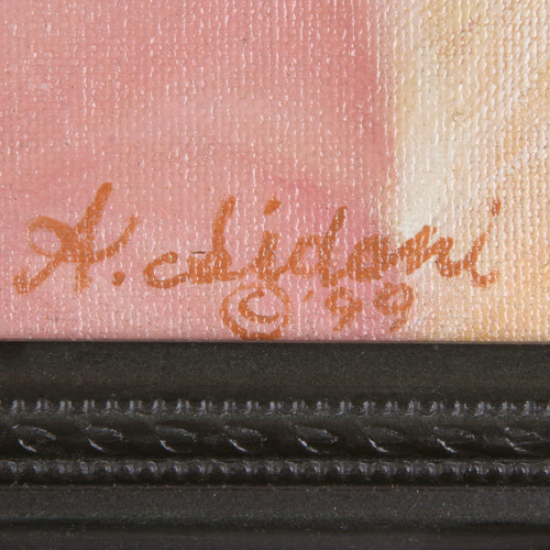 Born in Buffalo, New York, Anthony Sidoni (1919-2012) was a self-taught artist with amazing natural talent. He began by drawing portraits as a child and his skill was soon recognized by the renowned Italian Oil artist, Tony Sisti, who gave Anthony several lessons at the local community painting class. In the late '60s, Anthony exhibited art in an art show alongside famed artist Julian Ritter and later received his first one-man show in Jane Freeman's gallery. It was after this that Anthony gained vast international recognition. He lived and painted in West Hollywood, California and he was voted "Artist of the Year" in 2000 and 2001. (Source:QArt)