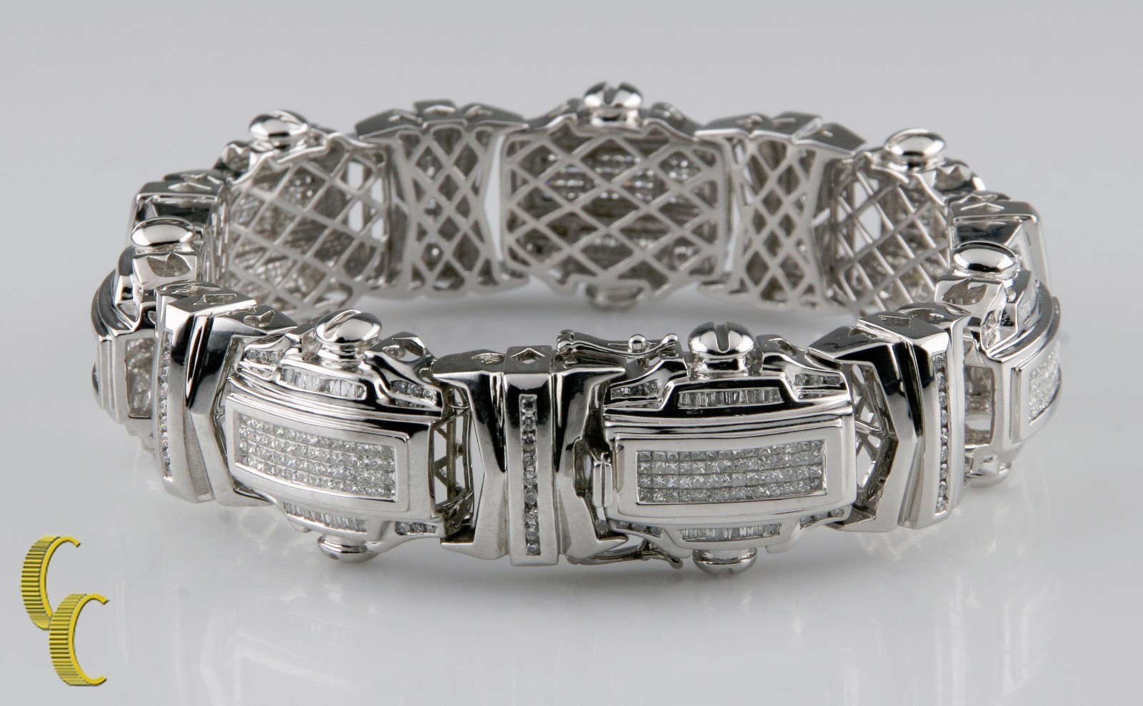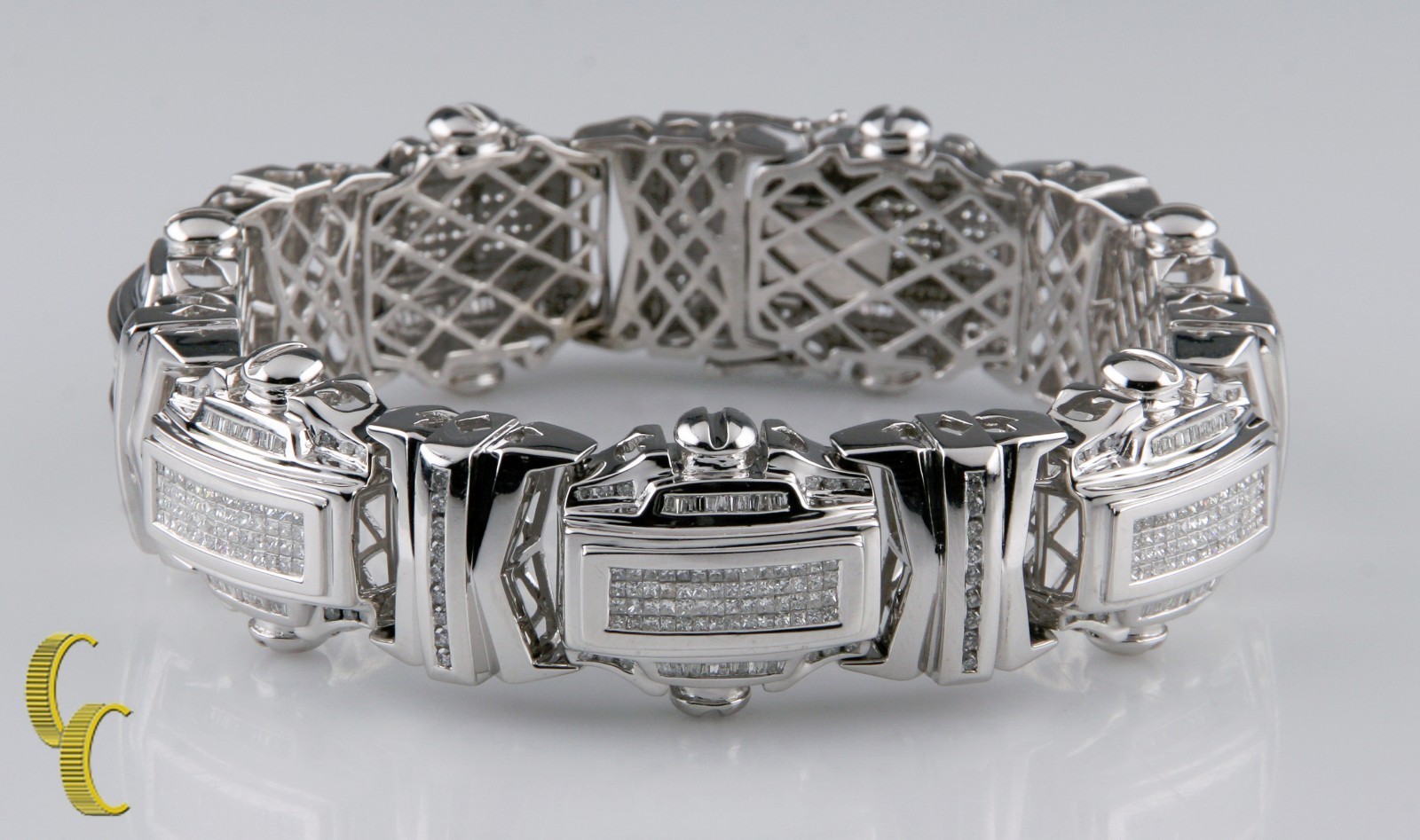 18.00 carat Diamond Plaque 14k White Gold Statement Bracelet 9.75"