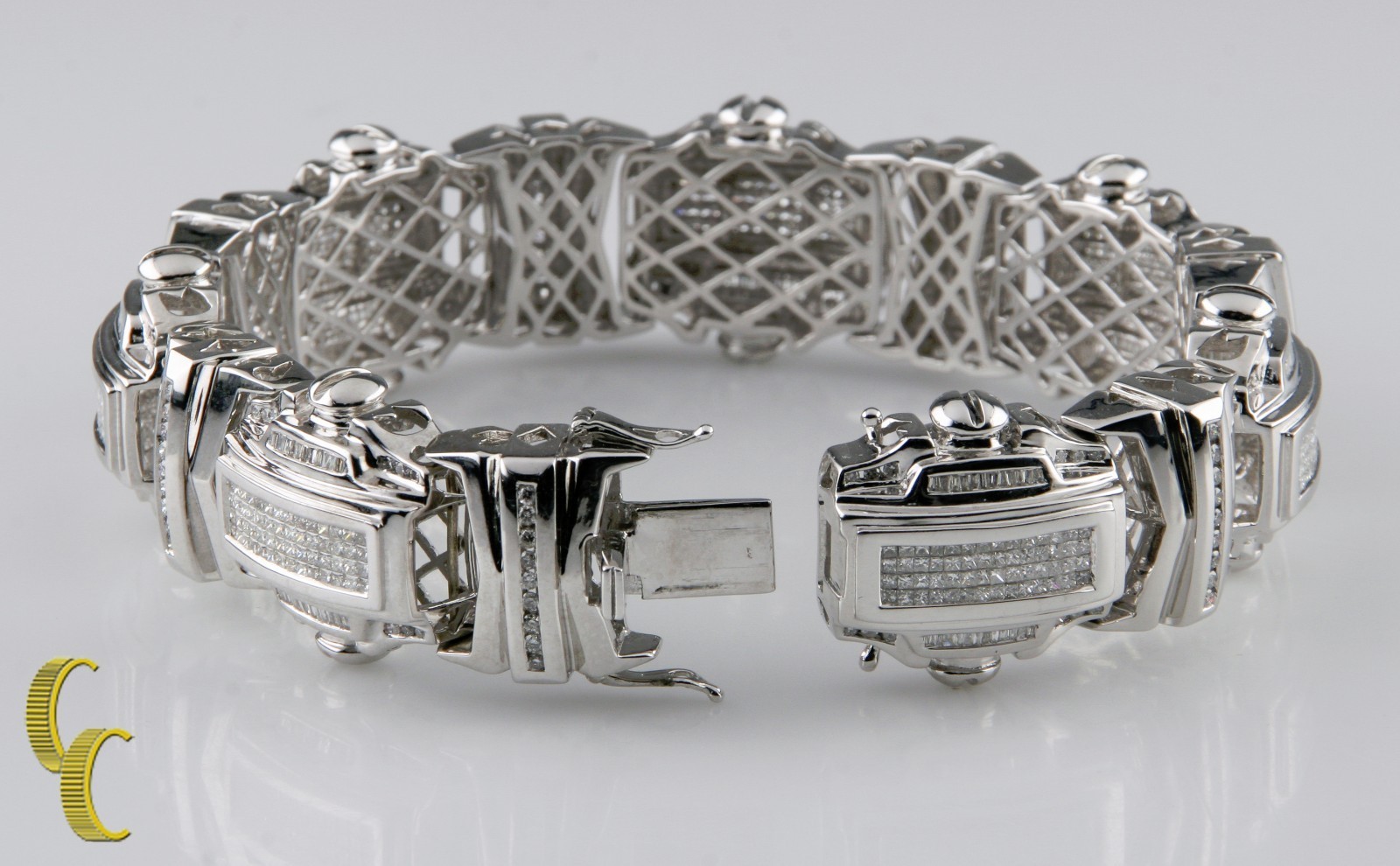 14k White Gold Large Plaque Diamond Bracelet TDW = 18 carats, 9.75" Long! Huge!