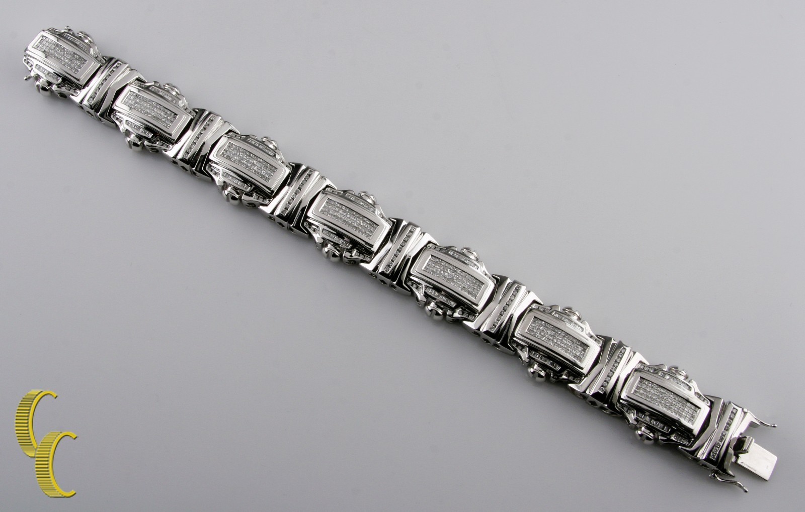 Gorgeous Large 14k White Gold Plaque Bracelet Featuring Articulating Diamond-Set Plaques and Links