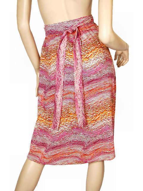 Semi-wrap with tie waist allows flexibility; drapes beautifully at the hip.