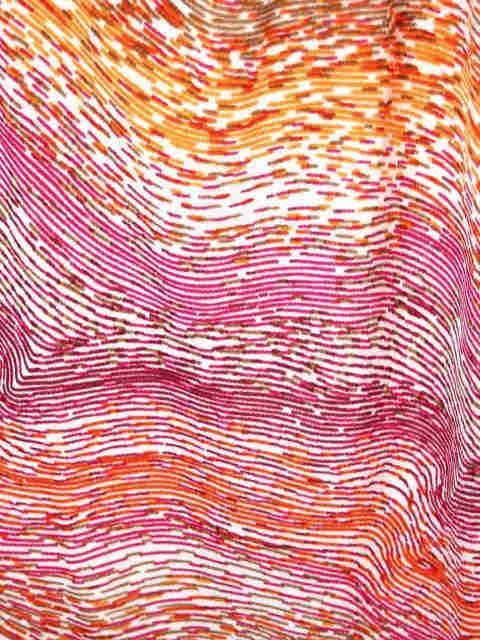 Cotton or rayon blend (unlined), painterly print textile. Made in France.
