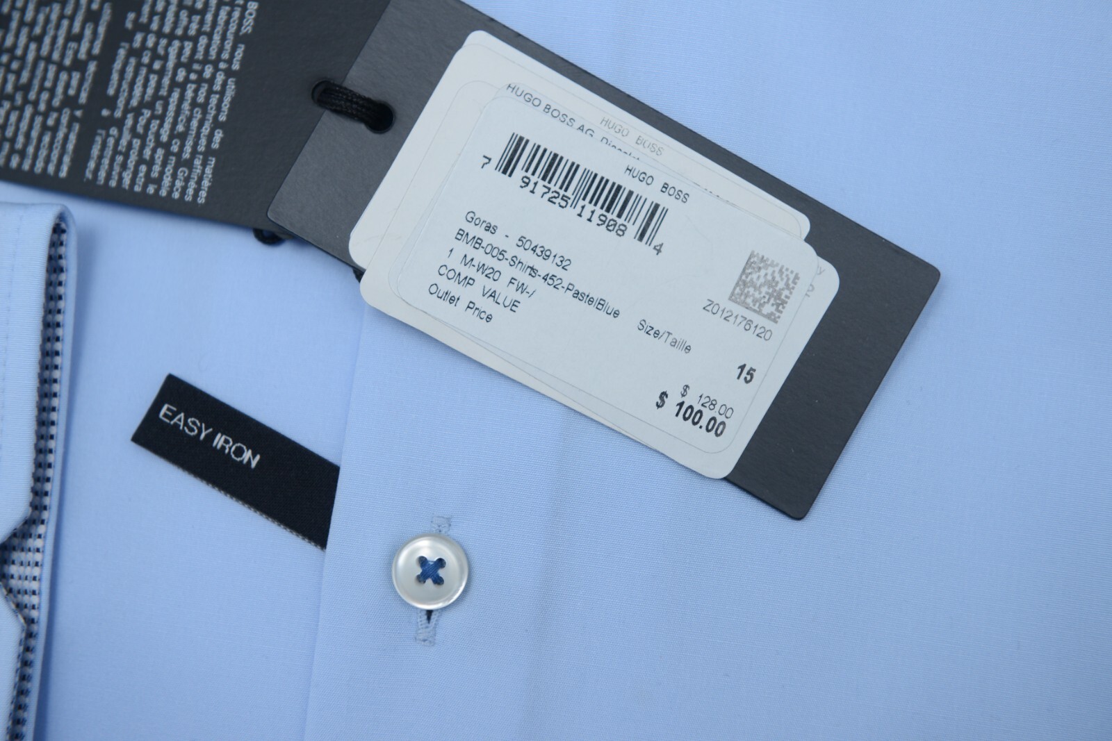 HUGO BOSS Herren Goras Easy Iron Regular Fit Pastellblau Baumwollkleid Hemd 37