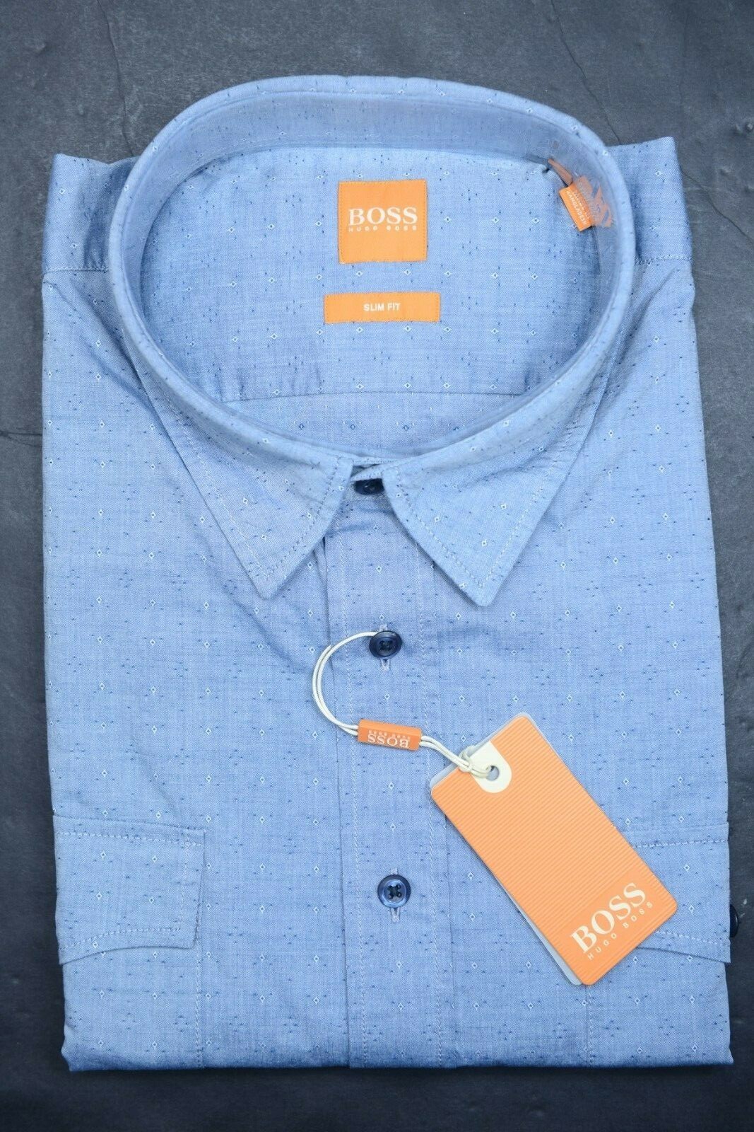 HUGO BOSS Herren Edaslime Slim Fit Doppel Tasche Dunkelblau Cotton FREIZEIT HEMD