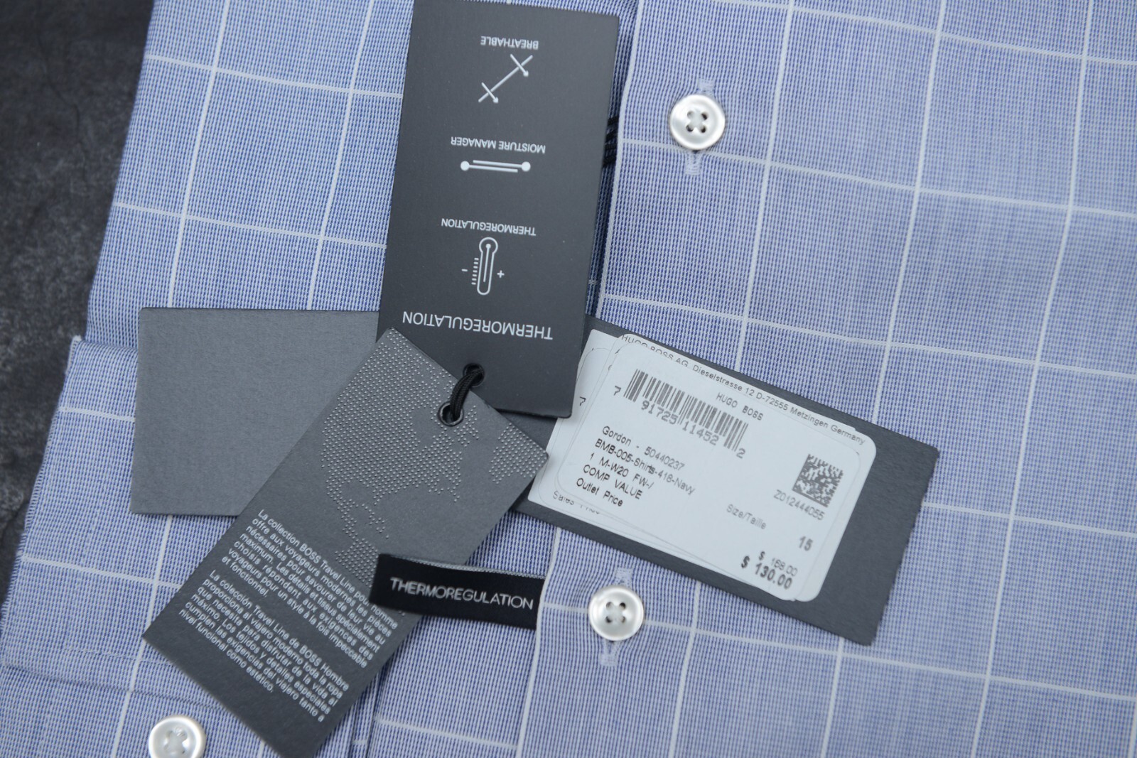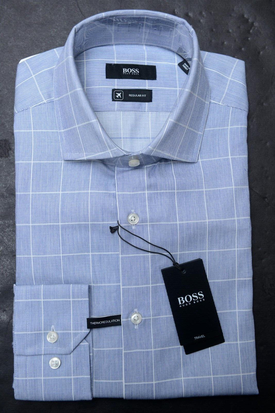 Hugo Boss Herren Gordon Travel Regular Fit Blau Thermoregulation Hemd 38 15