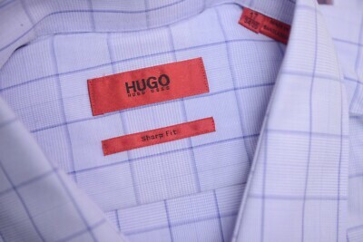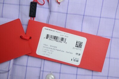 NWT Hugo Boss Herren Mabel Sharp Fit Light Pastell Purple Überprüfen Baumwollhemd