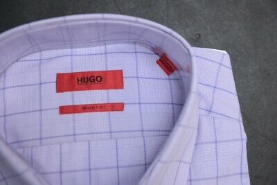 Hugo Boss Herren Mabel Sharp Fit Hellviolettes Baumwollhemd 42 16,5 36/37
