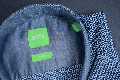 NWT Hugo Boss Herren C-Bilia Slim Fit Navy Blue Check Cotton Casual Shirt