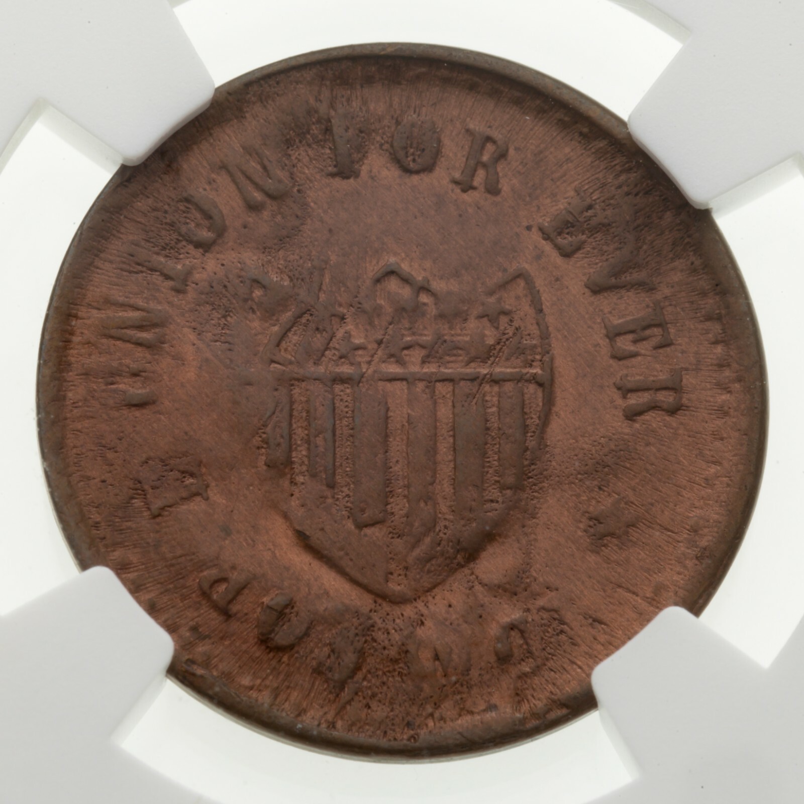 1863 Guerre Civile Token Union Pour Ever Pea Ridge F-180 NGC UNC Détails Nettoyé