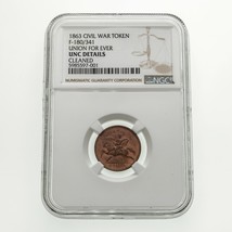 1863 Civil War Token Union for Ever Pea Ridge F-180 NGC UNC Details nettoyes