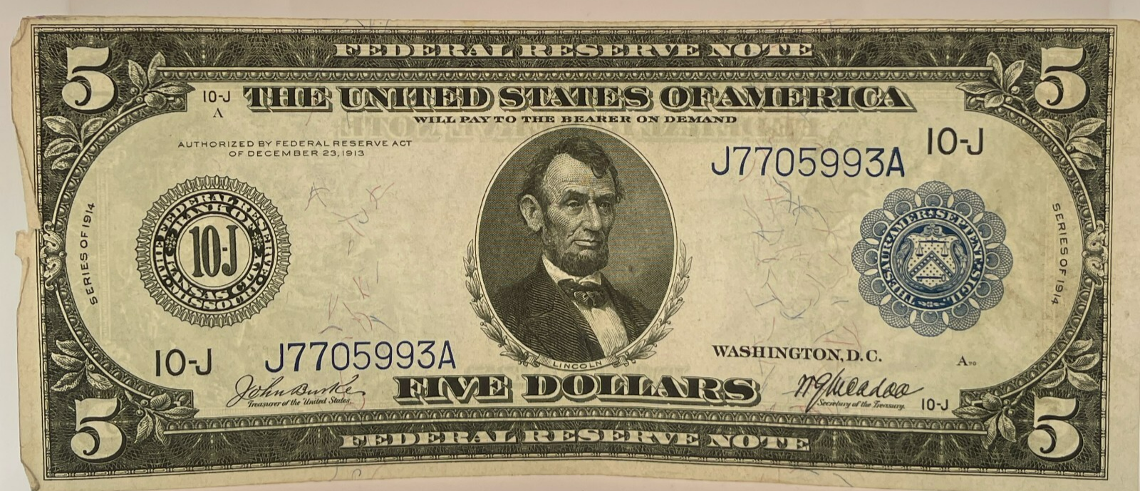 Série De 1914 Fédéral Reserve Remarque Très Fin État Fr #844