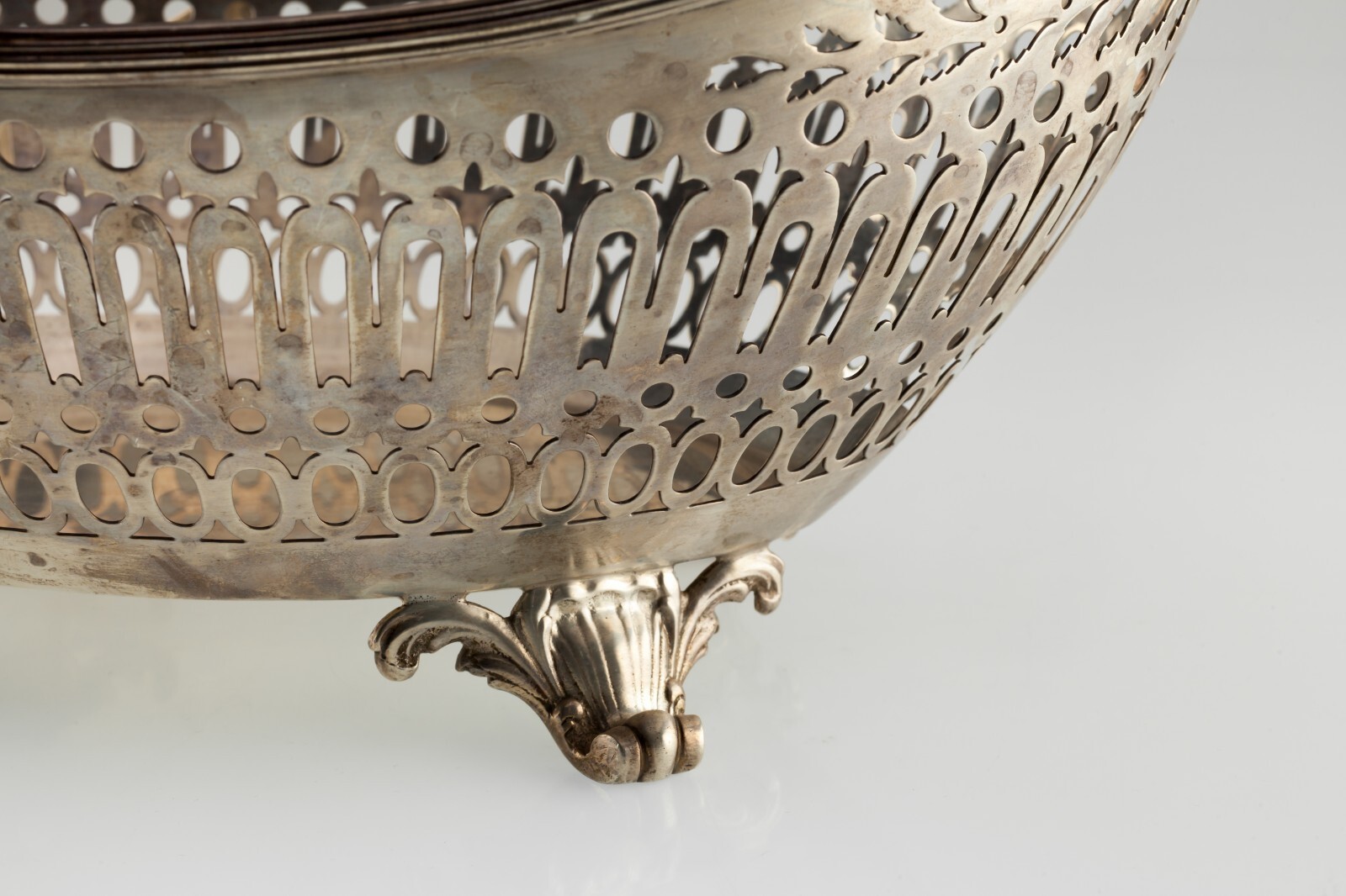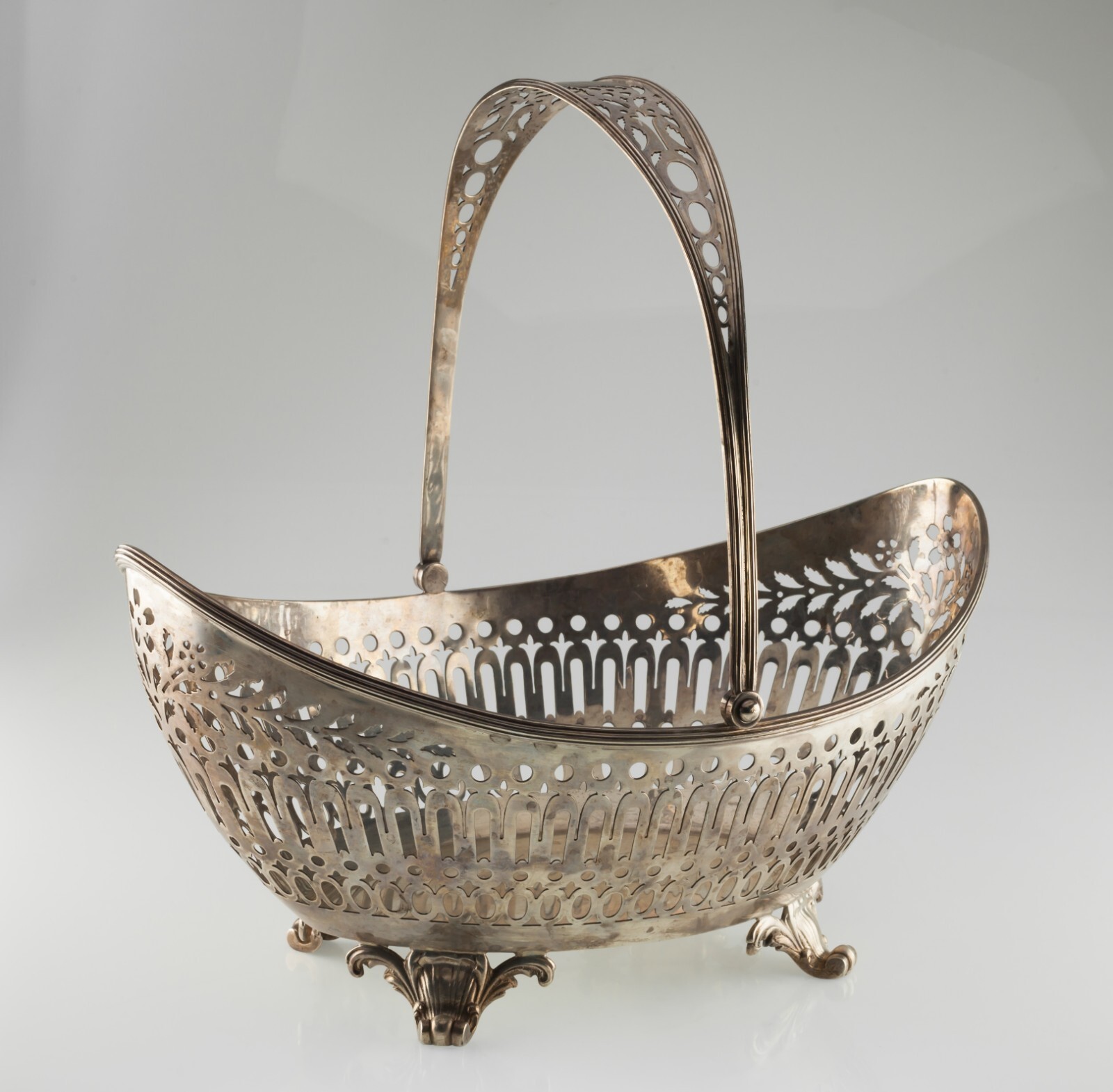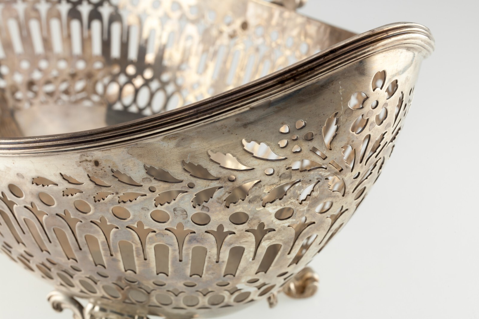 Magnifique grand panier en argent sterling avec poignee marquee RW (imbrique)