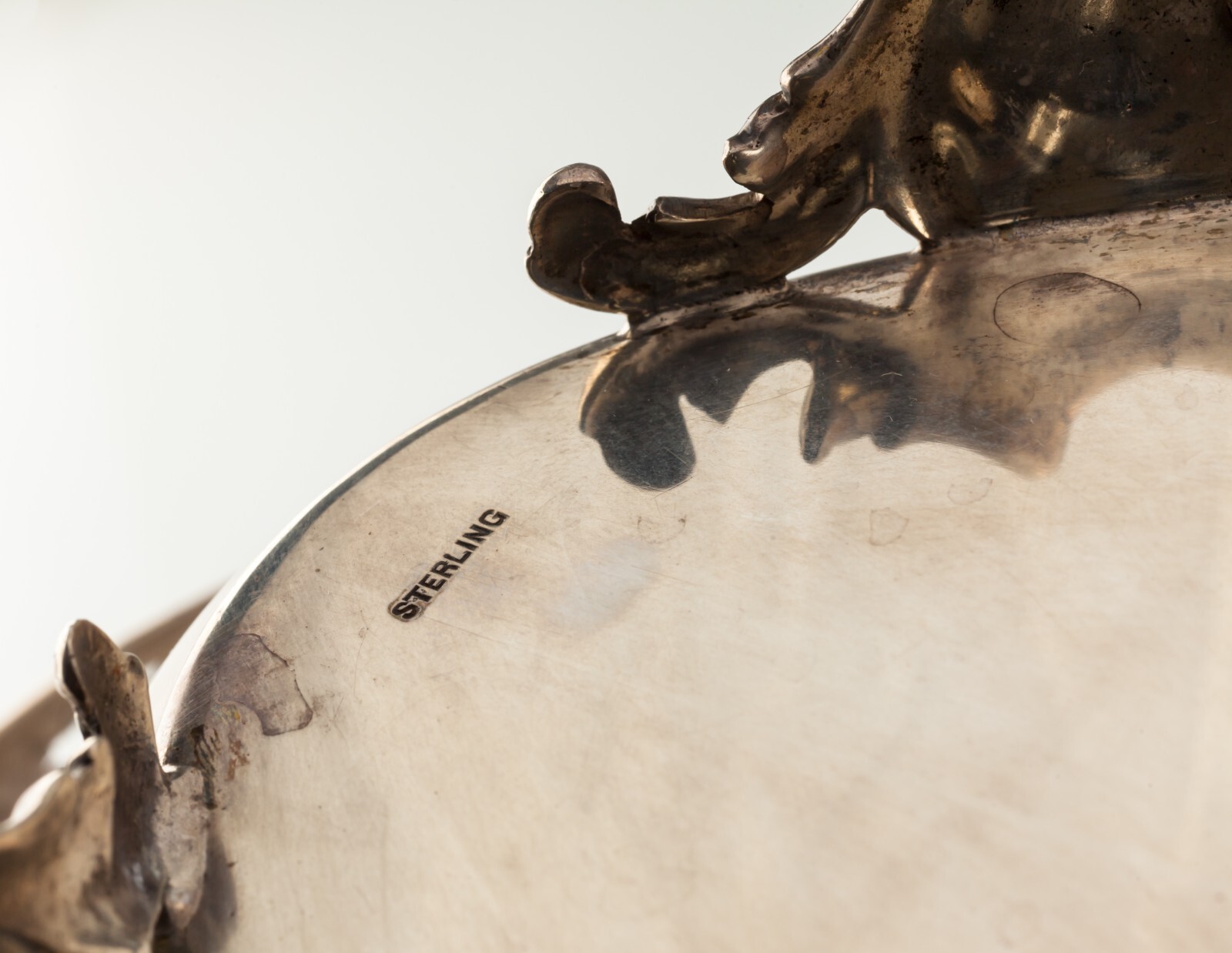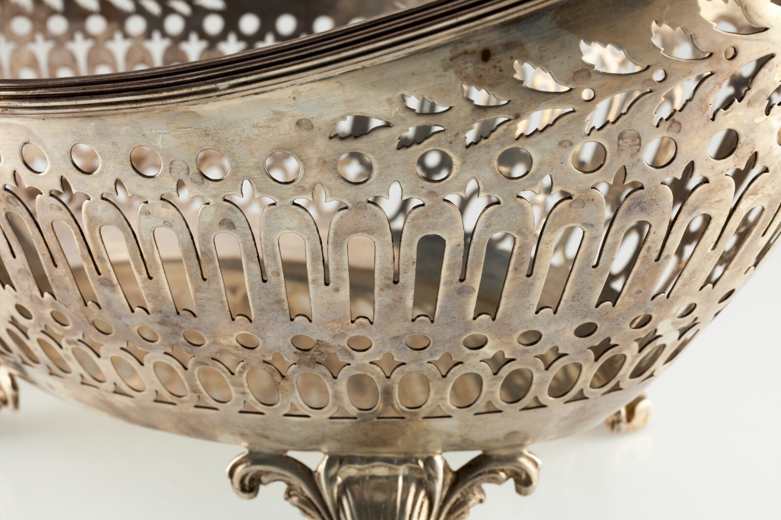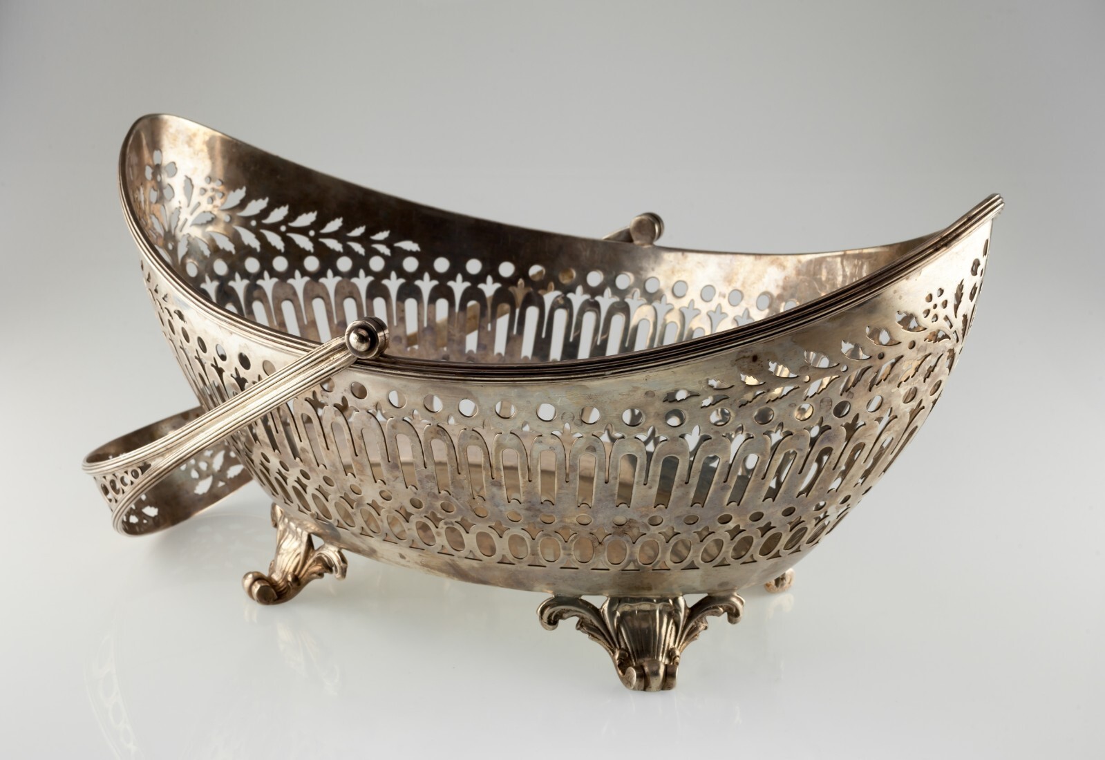 Magnifique grand panier en argent sterling avec poignee marquee RW (imbrique)