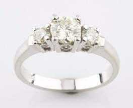 1.64 Carat Diamant Rond 3-Stone 18k or Blanc Fiançailles Taille Bague 7 W / Cert