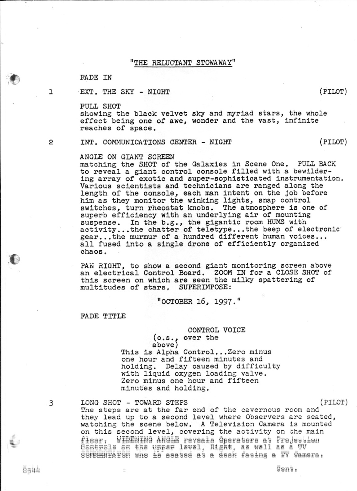 1965’s LOST IN SPACE: THE RELUCTANT STOWAWAY Episode #1 TV series script