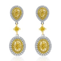 2.93CT Pera Ovalado Natural Elegante Diamante Amarillo Colgante Pendientes 18k