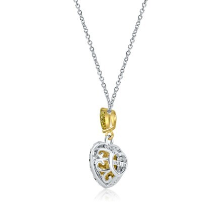0,84 TCW Fancy Light Yellow Heart Diamond Anhanger Halskette 14K Zwei -Ton -Gold