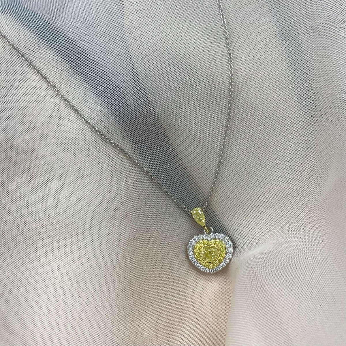 Dieser herzgelbe Diamantanhanger mit einer 16-Zoll-Rolo-Kette und einer runden Seite kleineren Diamanten machte ein schones und auffalliges Accessoire, was sich perfekt für einen Hauch von Glamour zu jedem Outfit oder für einen besonderen Anlass ergibt !!!