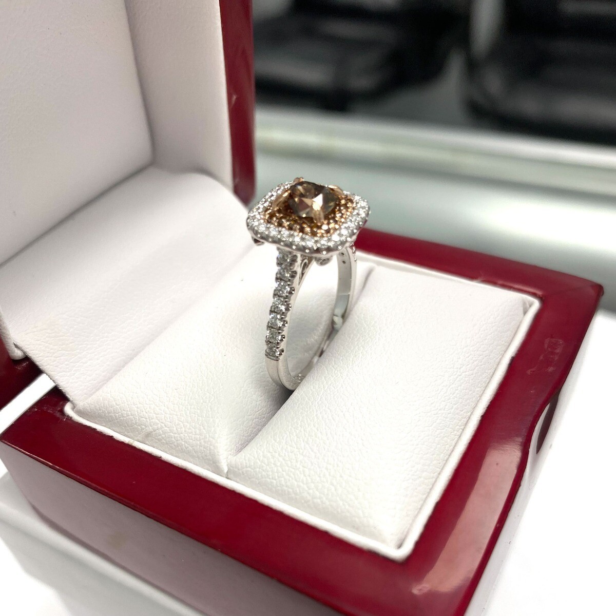 GIA 1.88 Cuscino CT Decorato Orangy Marrone Diamante Fidanzamento Ring 14k White