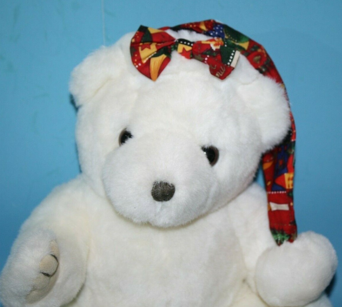 Royal Plush Toys Christmas Teddy Bear 12" Cap Bow White Stuffed Soft Felt Pads
