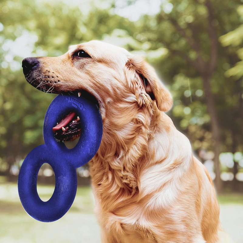 SuperChewy, our collection of indestructible dog toys for aggressive chewers. Choose between 12 different toys made from industrial strength rubber, featuring blue cobalt color for maximizing dog visibility. Our multi-purpose toys are perfect for fun, weight-loss, or retrain bad behaviour.