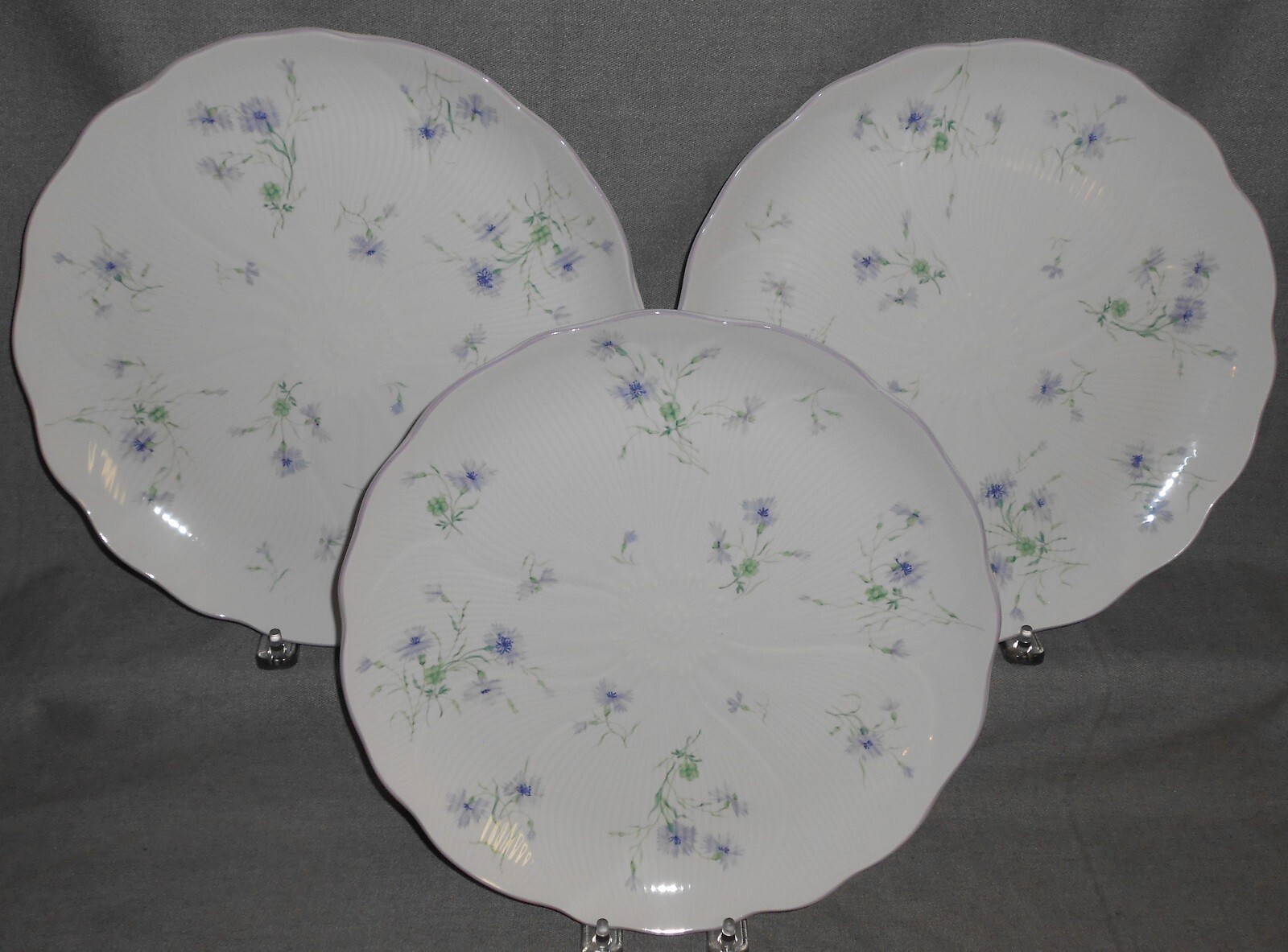 This is a Set of (3) 11 1/4" Dinner Plates from Mikasa in the 1984 Spring Melodies Light Touch Patten and Made in Japan. They are all in good pre-owned condition with no chips or cracks.