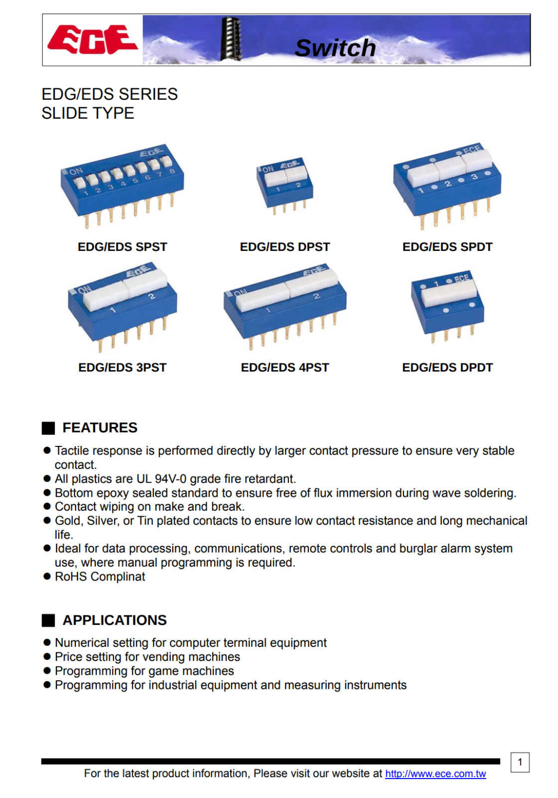 EDS108SZ ECE 8-Pole 2-Position Slide DIP Switch Toggle SPST