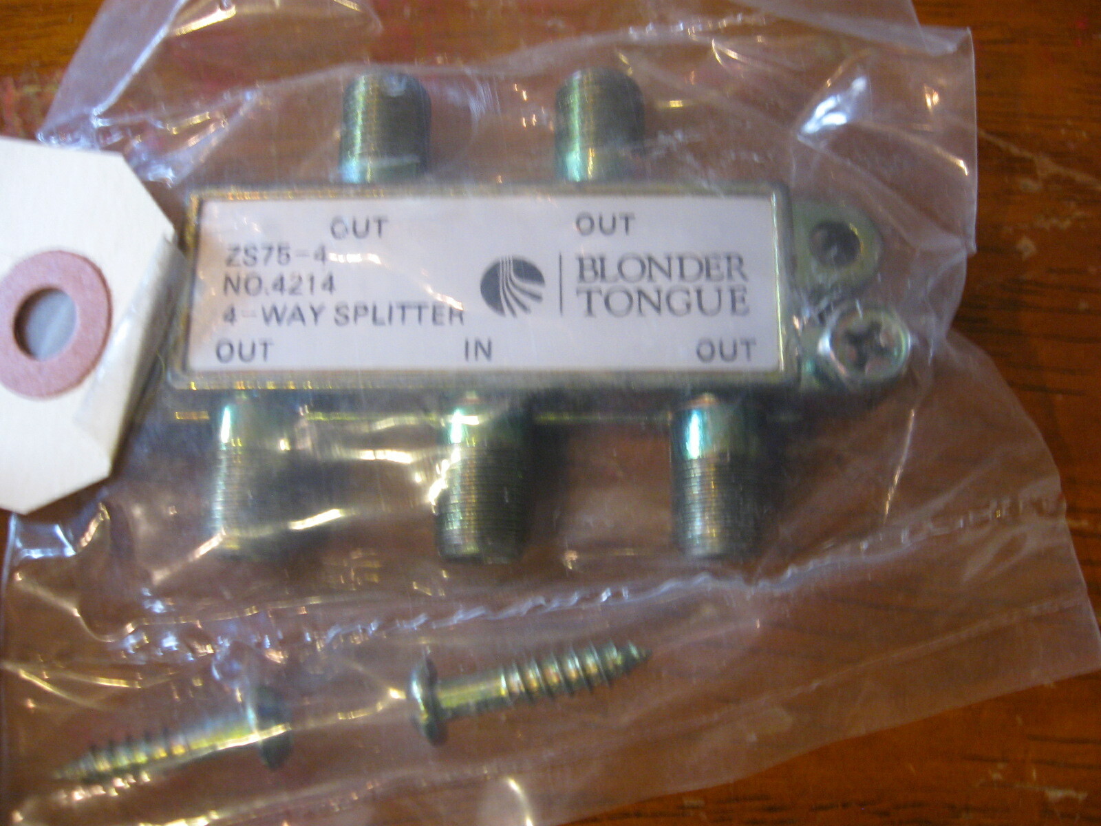 NEW Vintage Blonder Tongue 4 Way Splitter TV / 4 Outs / no. 4214 # ZS75-4 This is great stuff. Vintage OEM NEW Blonder Tounger Quality Splitter. You cant get this anywhere. I priced this at the 1990 pricing! You need deals during this crazy time in our nations history!! **Please check out my other new vintage TV/Radio parts and supplies. I bought bulk off a local retailer that went out of business recently. FREE USA SHIP