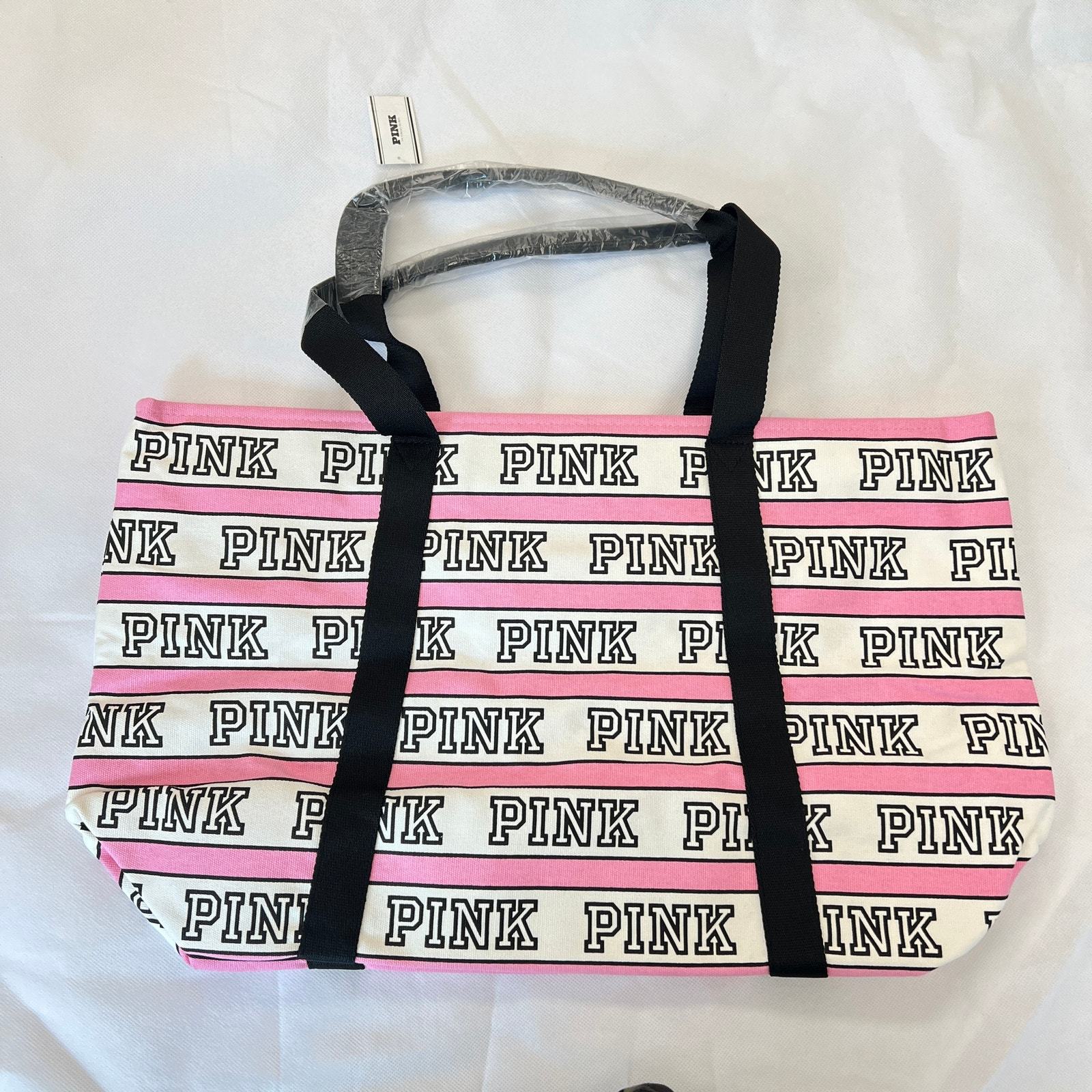 Victoria's Secret Pink Tote Weekender Bag Pink Black Logo Stripe Canvas