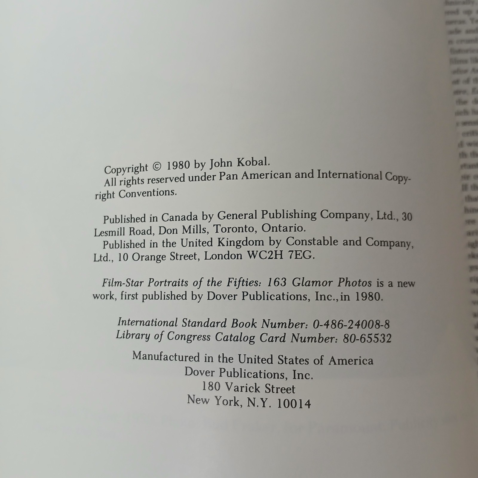 Film-Star Portraits of the Fifties 163 Glamour Photos Paperback book John Kobal