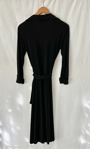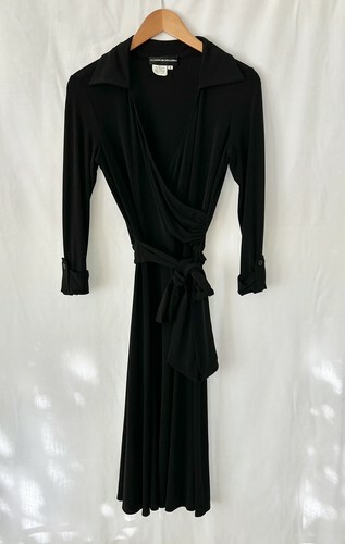 DONNA MORGAN Black Wrap Dress Size 6 Collared Faux Wrap Classy Fall Career